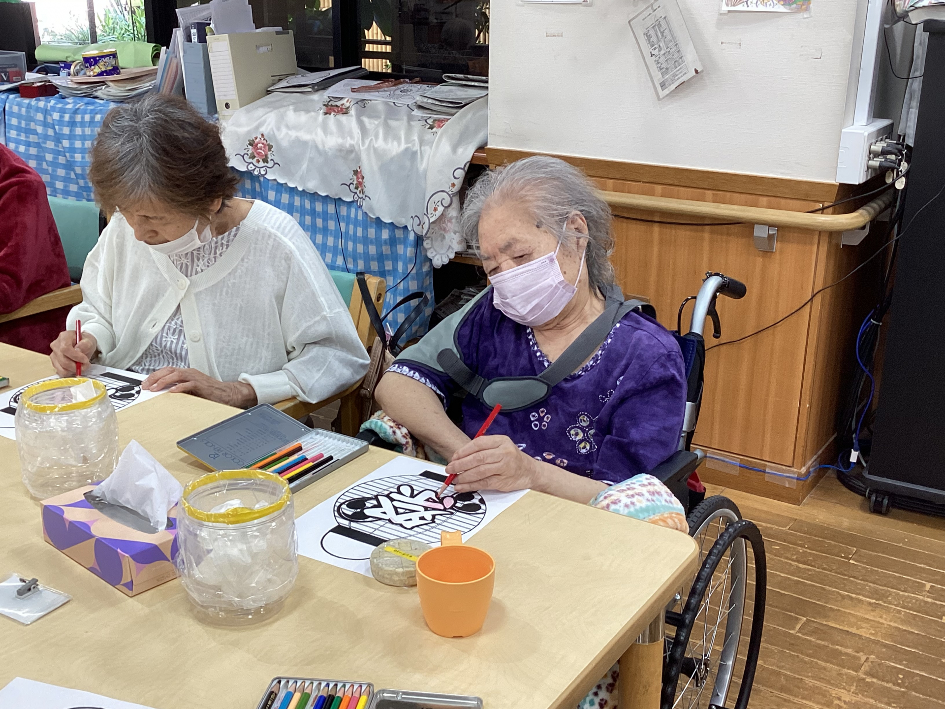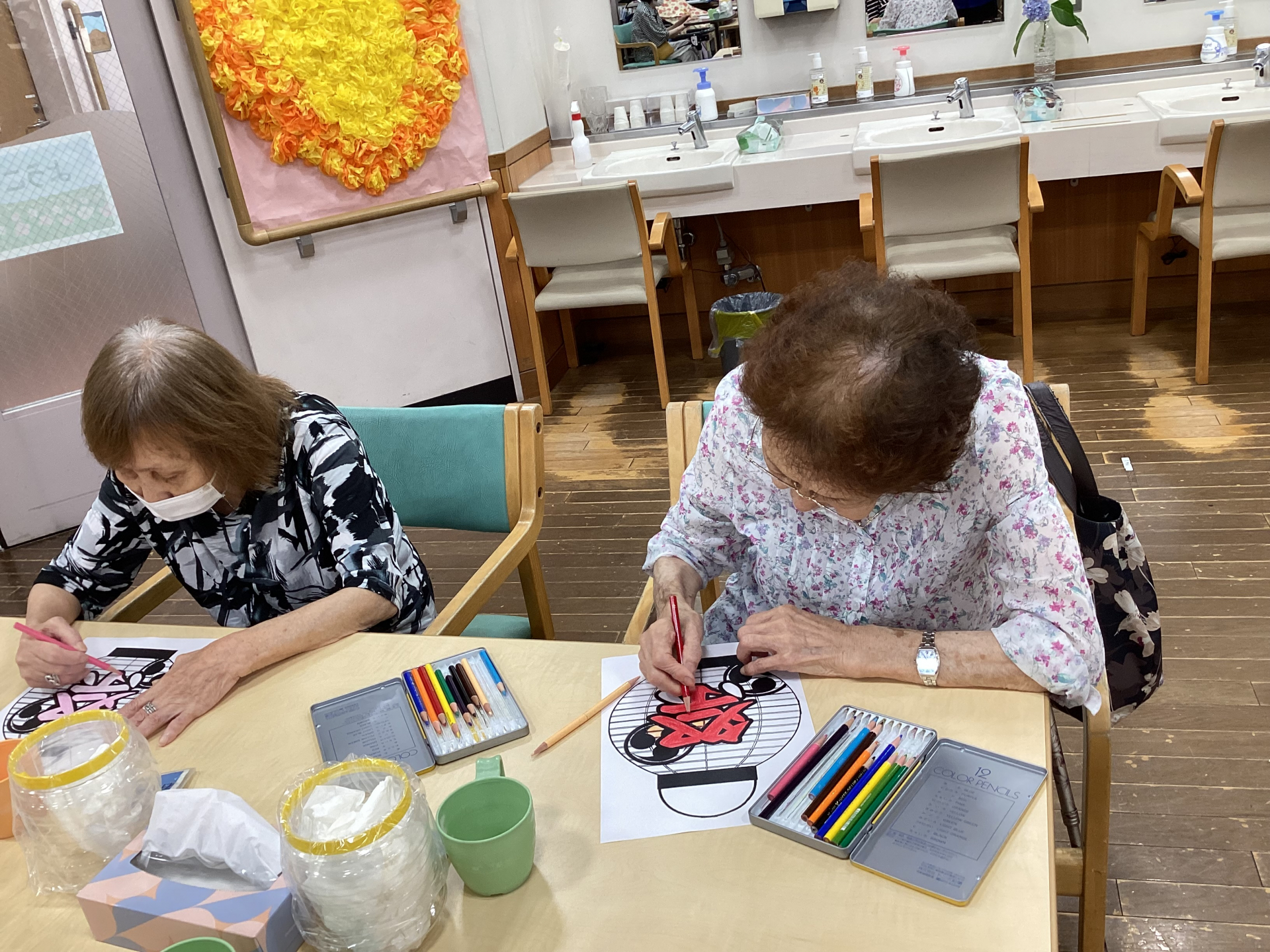 今回は来月の納涼祭に向けて提灯のイラストに色をつけていただきました!