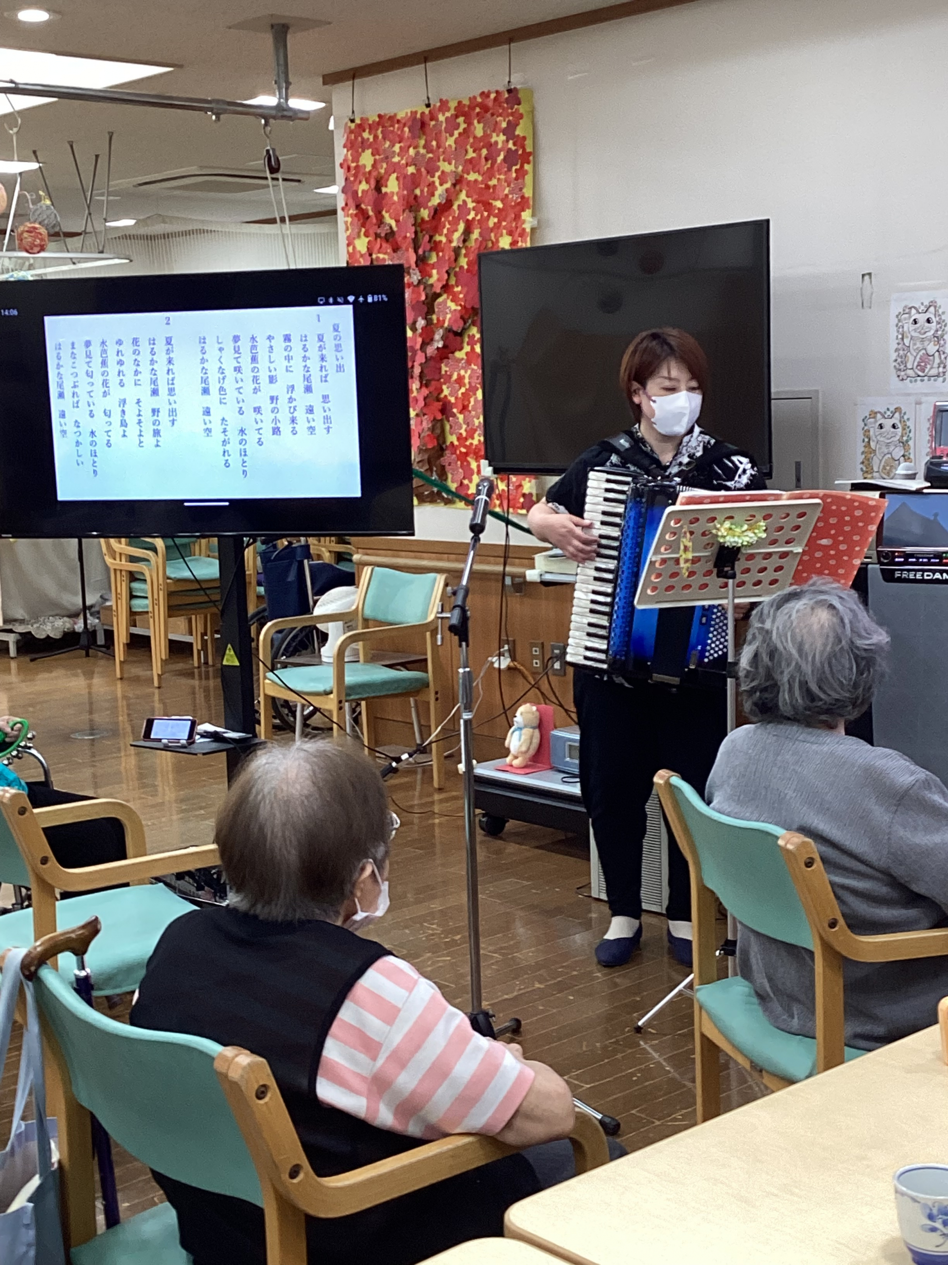 前回も好評だったアコーディオン演奏会ですが、今回も皆さんアコーディオンと共に綺麗な歌声を響かせておりました。