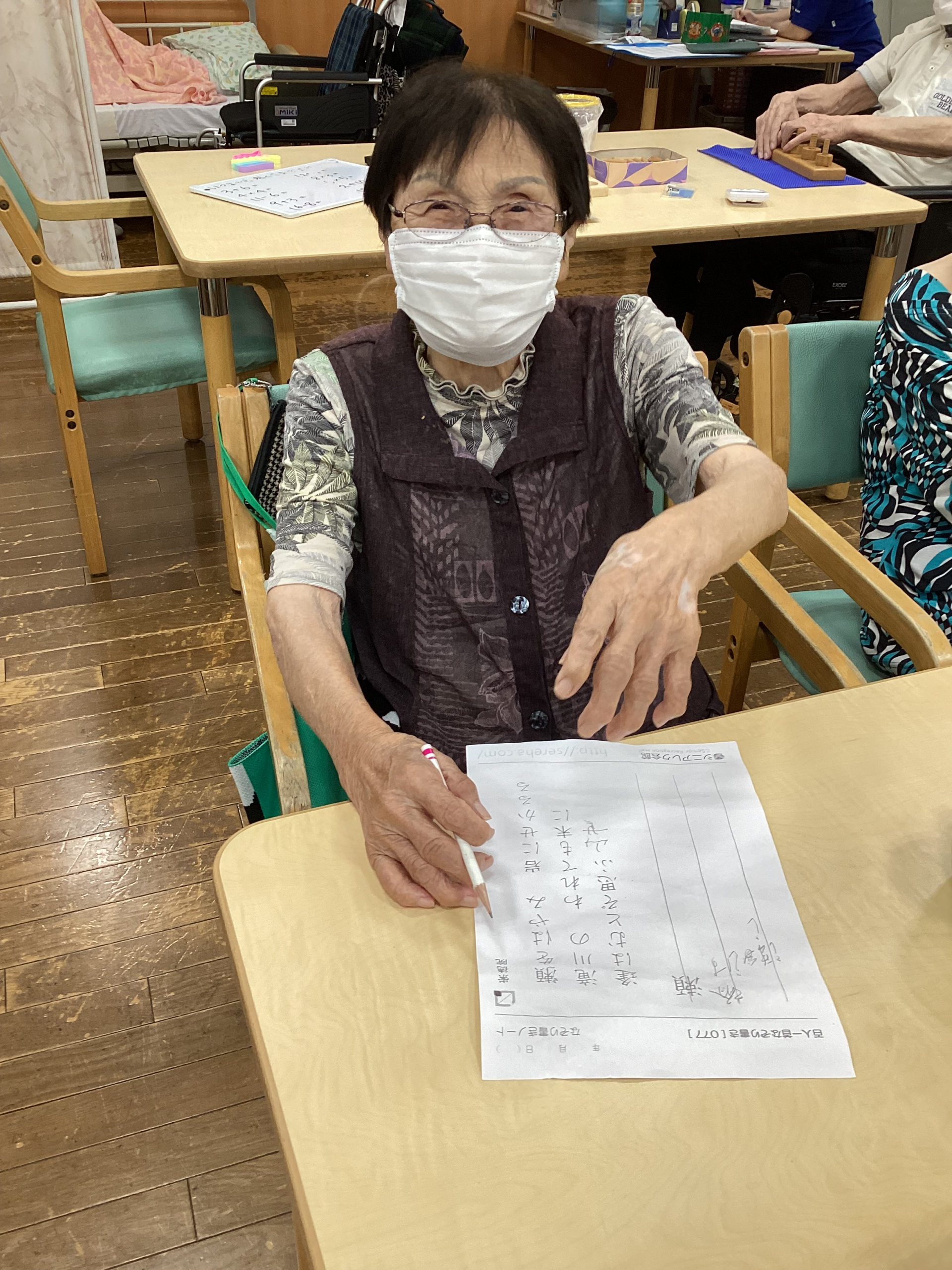 一つ一つの単語を丁寧に力強く書き、指の体操だと一生懸命に取り組んでおられました!
