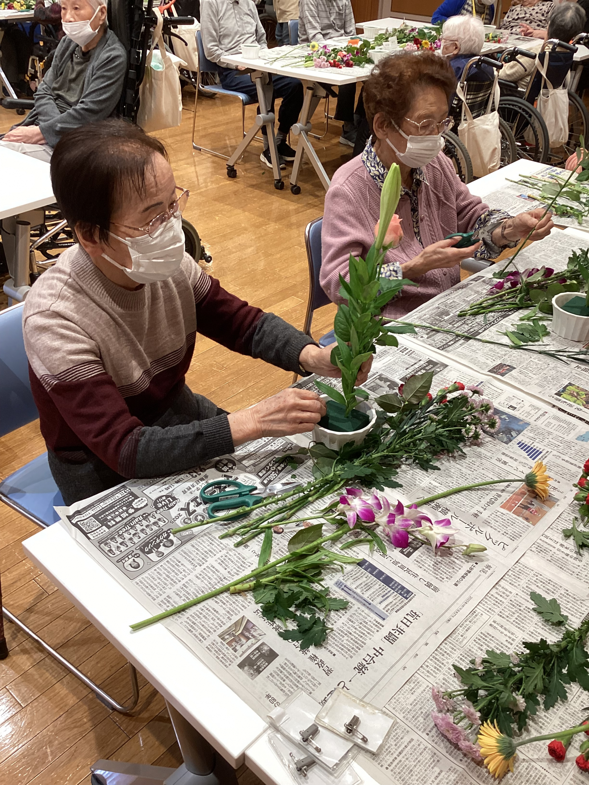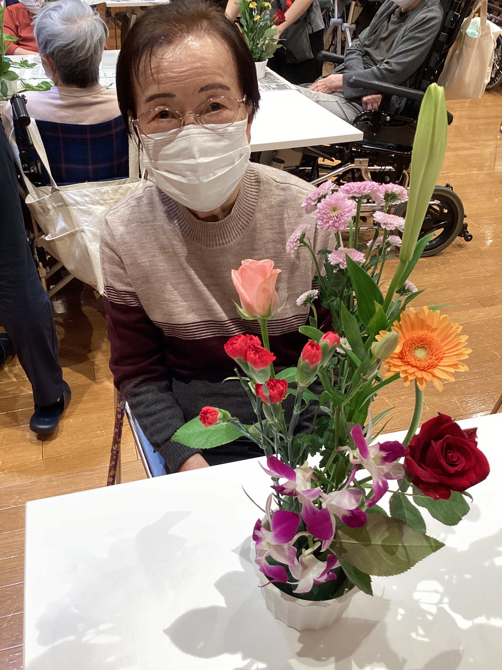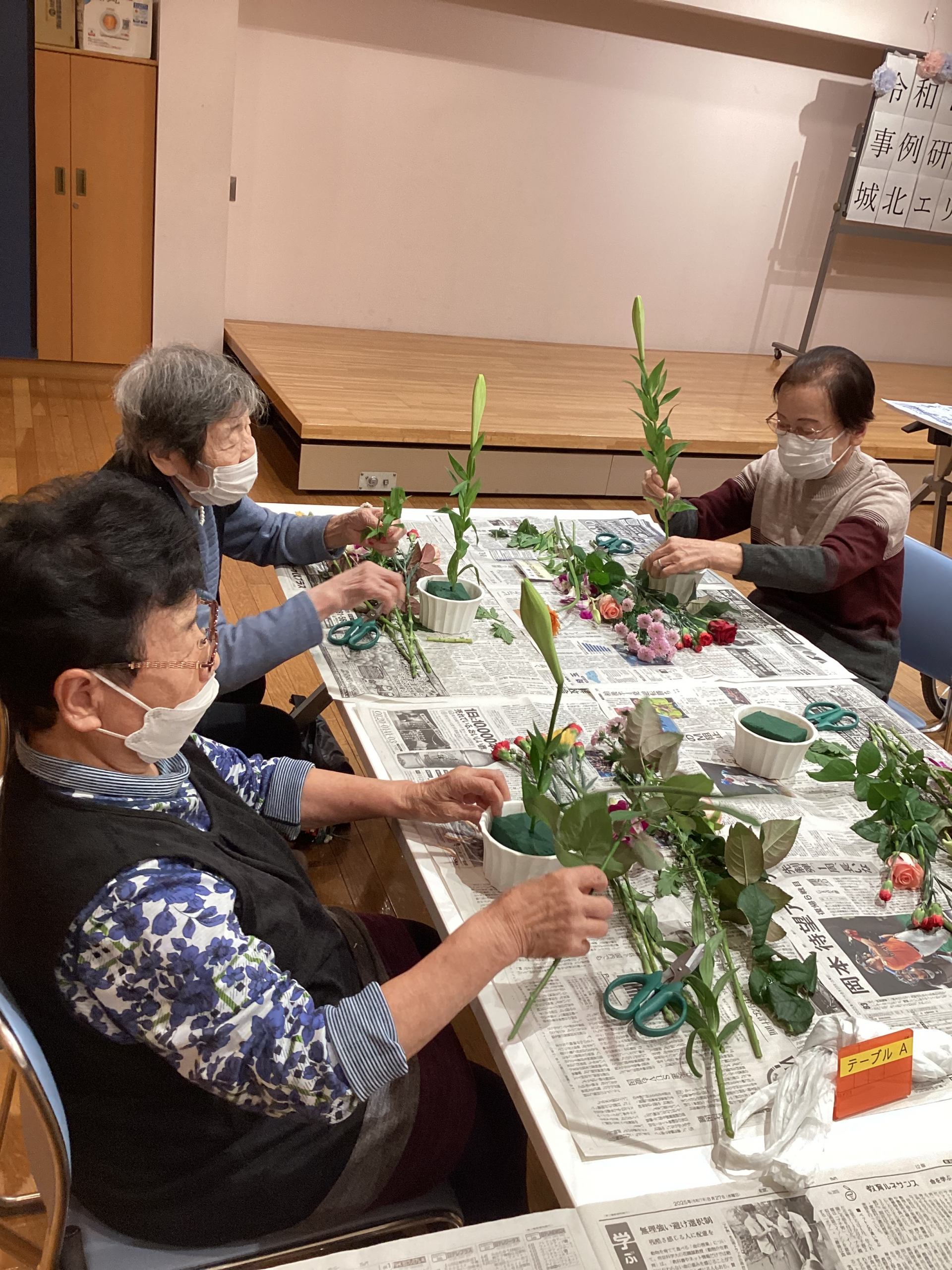 今日は先日行われた、ご希望者様参加のフラワーアレンジメントの様子をお伝えします!