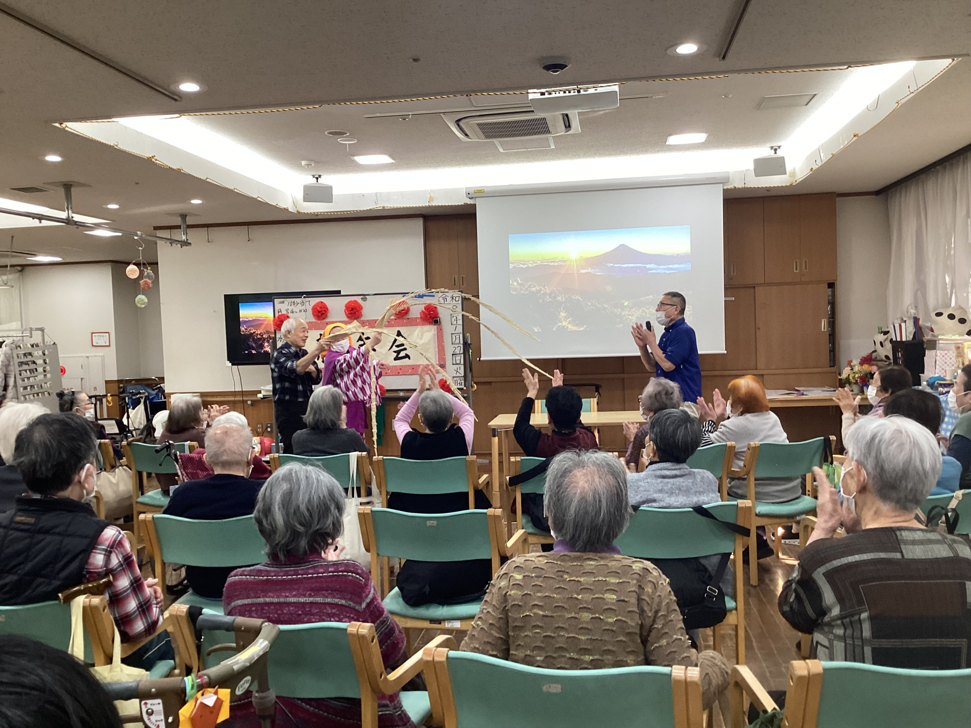 続いて『南京玉すだれ』!職員の練習の甲斐あり、ご利用者様から大好評でした!