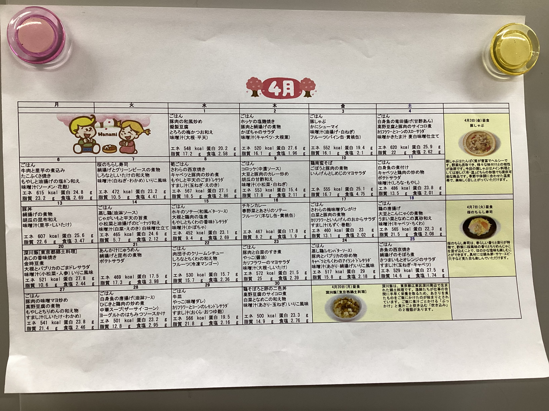 花の木デイ4月の献立表をアップさせていただきます!