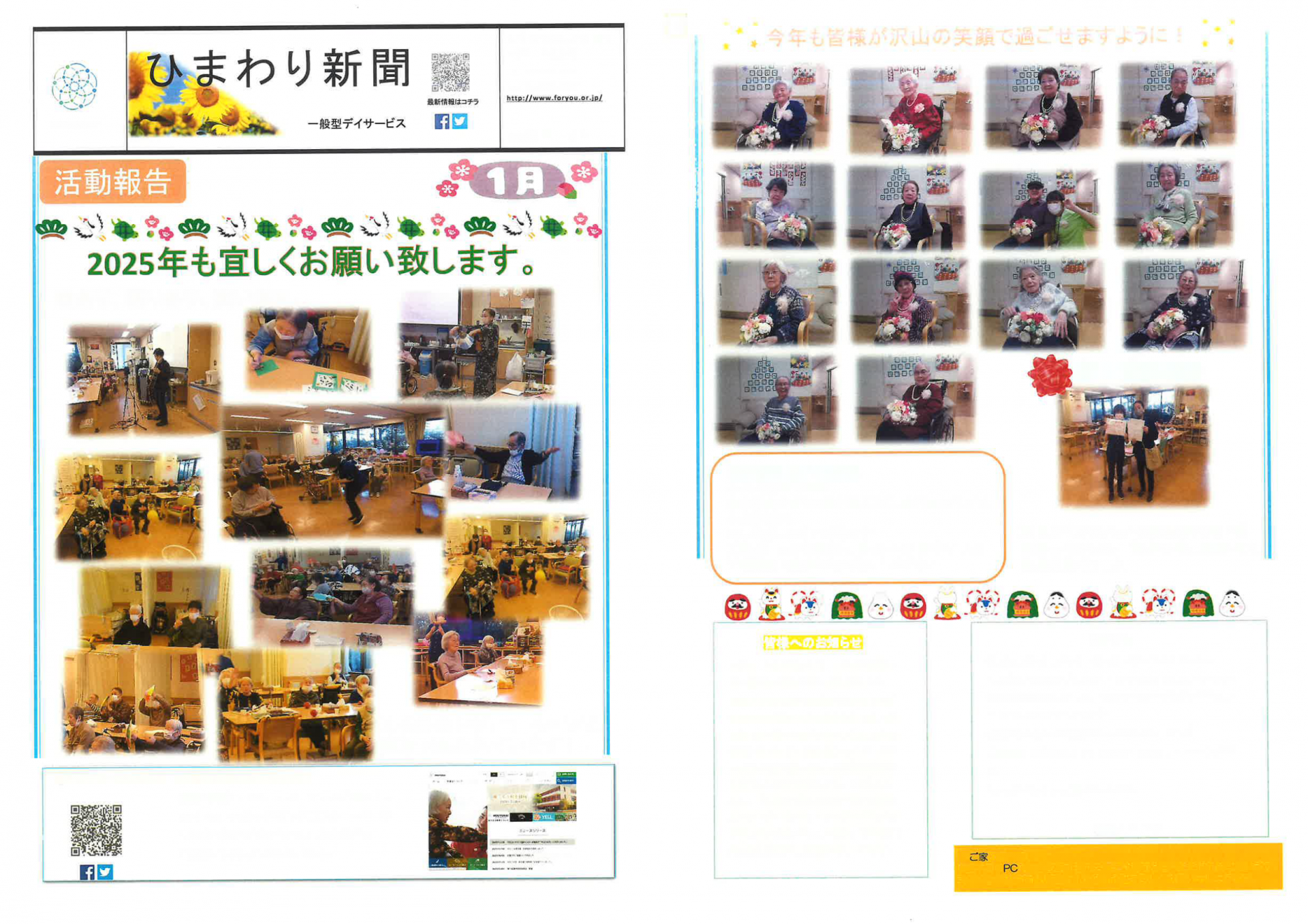 2024.12.10 活動報告 1月の新聞が出来ました。 Tweet シェアする 1月の新聞が出来ましたので、皆様是非ご覧下さい。 マイホームはるみデイサービス 飯塚 前の記事 2024.12.11 活動報告 お誕生日 次の記事 2024.12.09 活動報告 メモリアル 一覧へ戻る