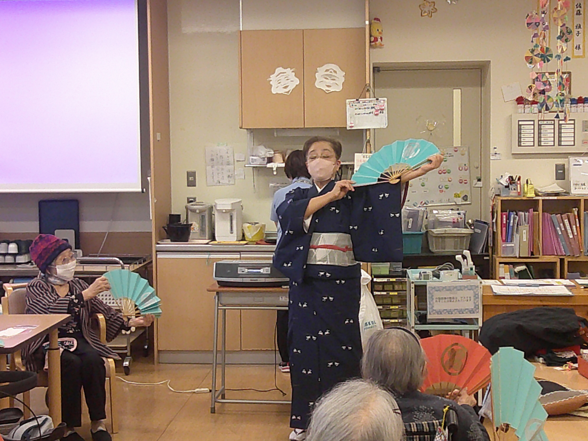 2024.12.20 活動報告(IN) 踊りの会 2日目 Tweet シェアする 今月は踊りの会 スペシャル月!! 2回も開催してくださいました! 皆様も慣れた手つきで踊ります。扇子を使って優雅に 次は来年ですね♪ マイホームはるみデイサービス 近藤 前の記事 2024.12.21 活動報告(IN) フルートの調べ 次の記事 2024.12.18 活動報告(IN) 旗振りゲーム 一覧へ戻る