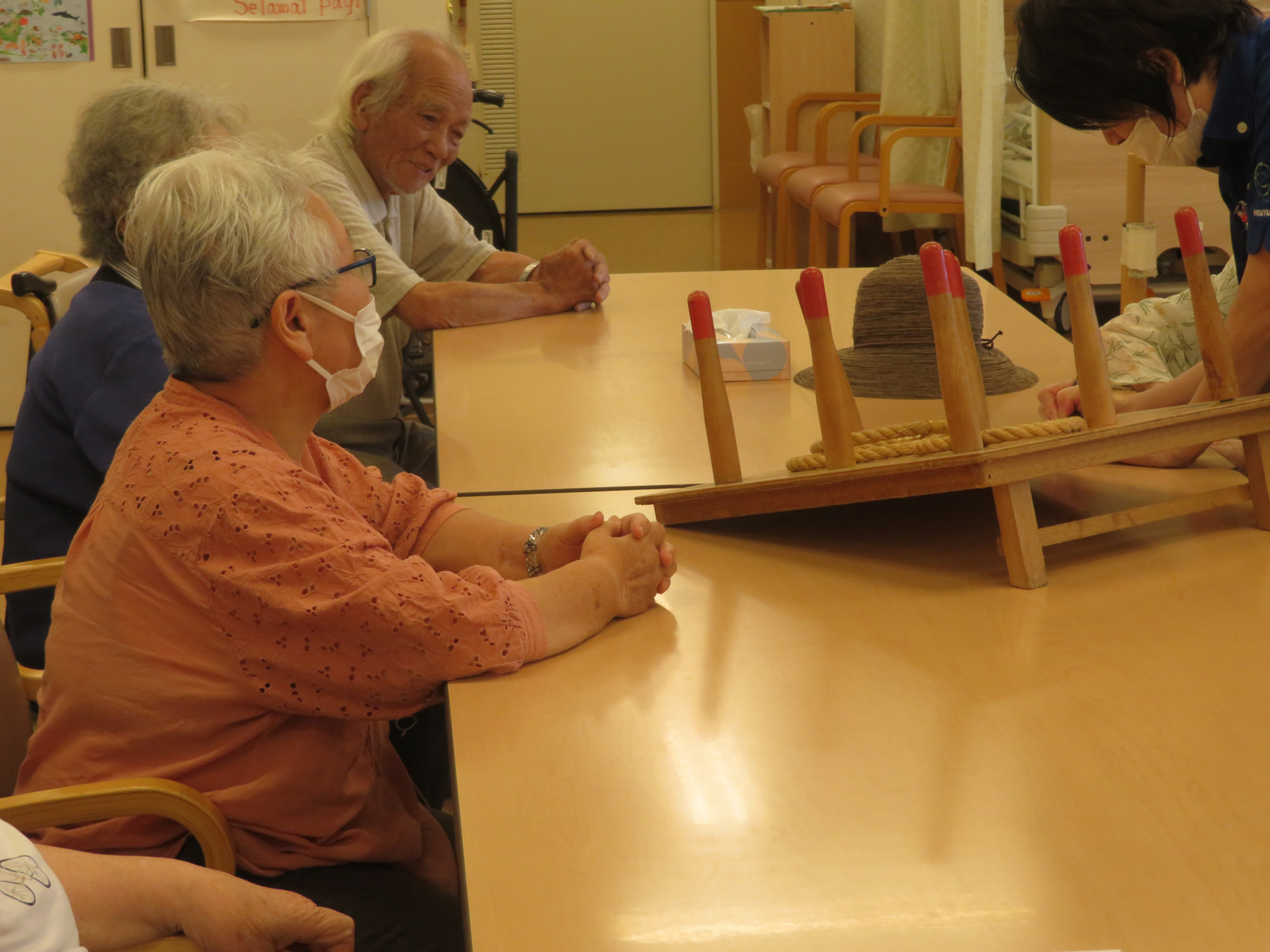 2025.08.05 活動報告 輪投げ Tweet シェアする 今日は帰宅まで時間があるので輪投げをしました。 皆さん夢中になって輪投げを楽しんでました。 マイホームはるみ認知デイ 飯塚 前の記事 2025.08.05 活動報告 踊りの会 次の記事 2025.08.04 活動報告 うちわでボールを転がそう! 一覧へ戻る