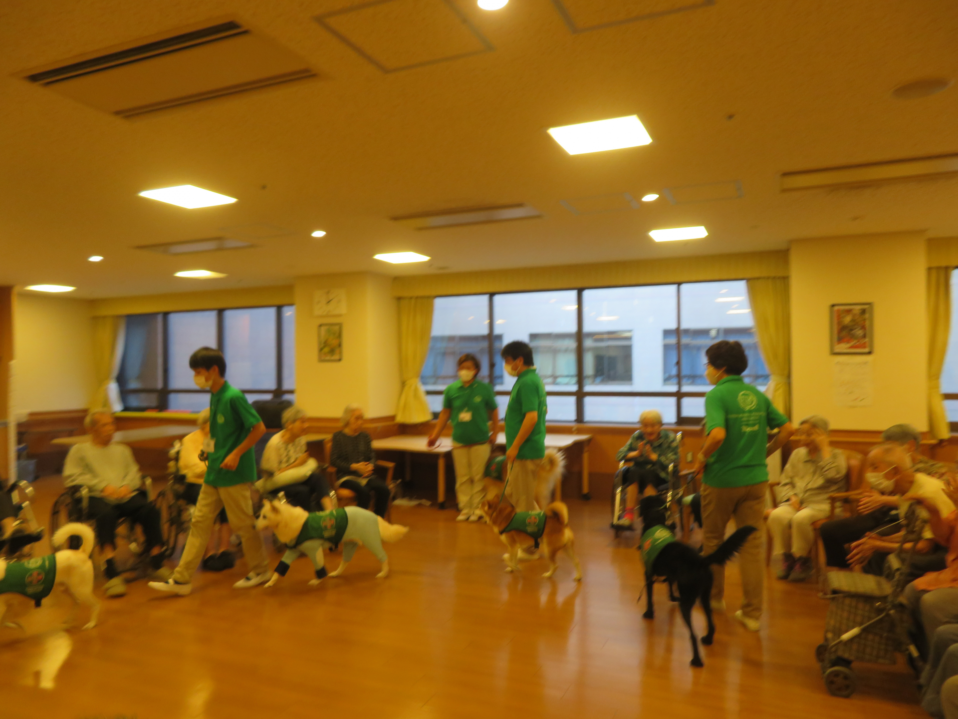 ふわふわのワンちゃんを撫でたり、抱っこしたりして、皆様の表情とても穏やかでした。