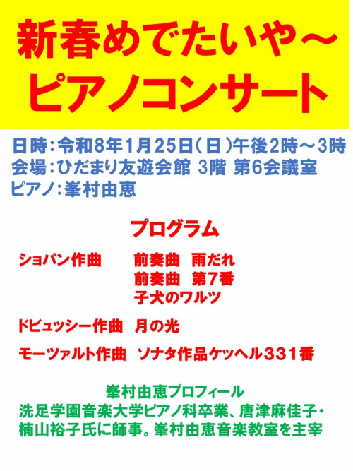 2026.02.01 3/8~3/14利用状況 お知らせ 2026.02.01 3/1~3/7利用状況 お知らせ 2026.01.31 詩吟教室 お知らせ 2026.01.31 コーラス教室 お知らせ 2026.01.31 就労支援講座 お知らせ 2026.01.31 筆文字アートを体験してみませんか♪ お知らせ 2026.01.30 ひだまり粘土教室 お知らせ 2026.01.29 笑って体力づくり 活動報告 2026.01.28 二胡教室 お知らせ 2026.01.28 「牛乳パックで作る小さなトレイ」を開催しました 活動報告 2026.01.27 骨盤底筋トレーニング 活動報告 2026.01.25 ピアノコンサート お知らせ 2026.01.25 ゆうゆう通信 2月号を発行しました お知らせ 2026.01.22 スローエアロビックを開催しました♪ 活動報告 2026.01.22 小林睦子先生の「おとなの居場所」を開催いたしました! 活動報告 1 2 3 4 5 … 15