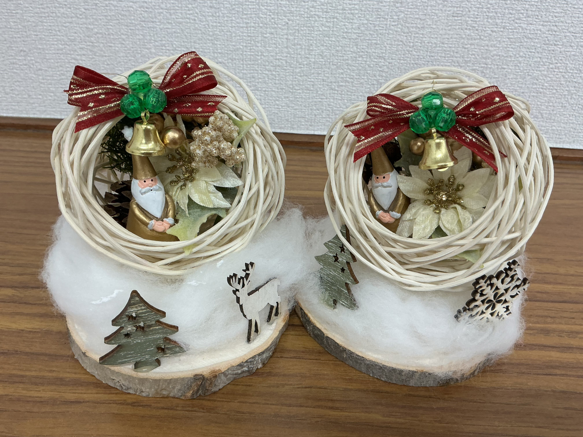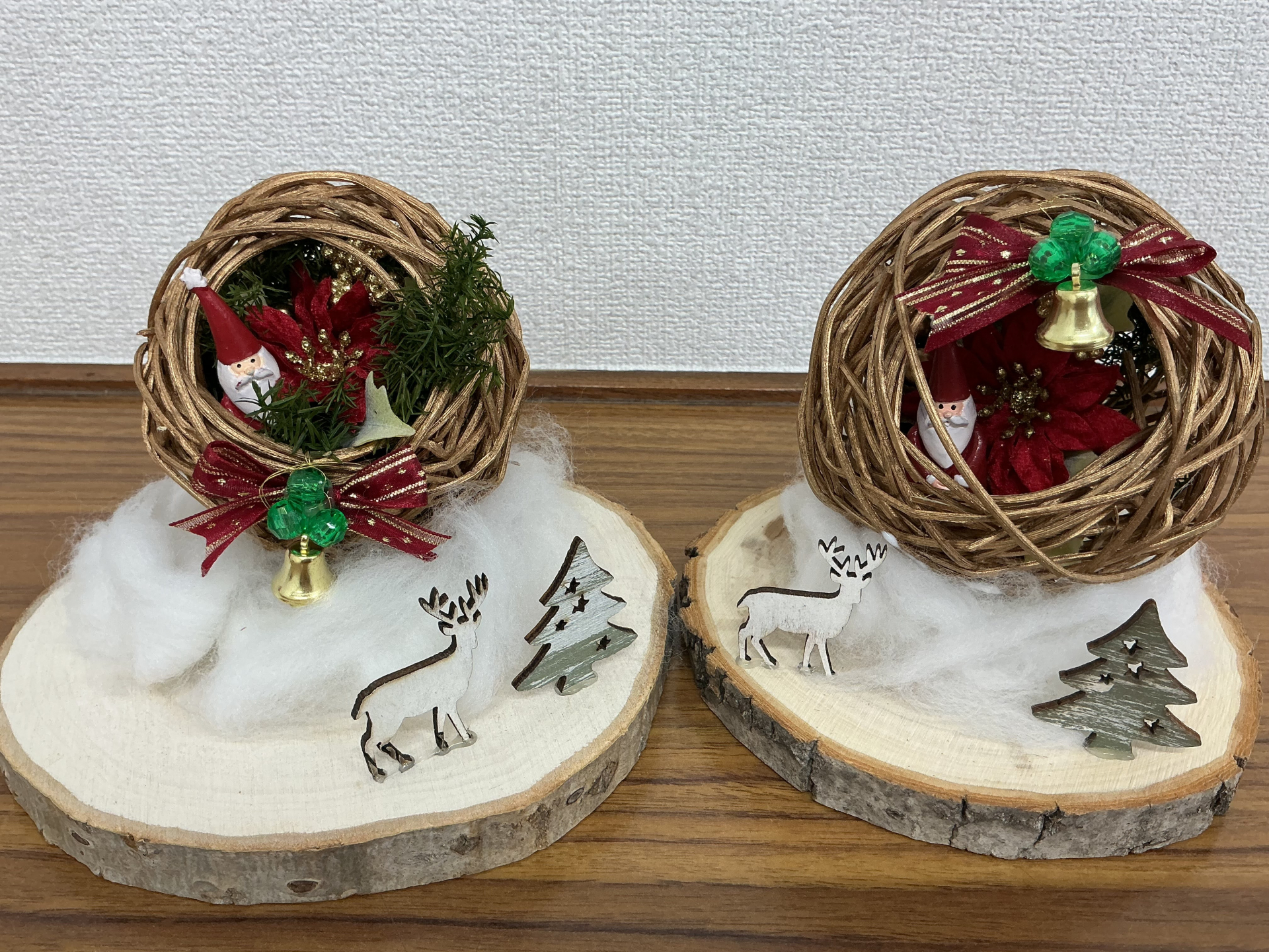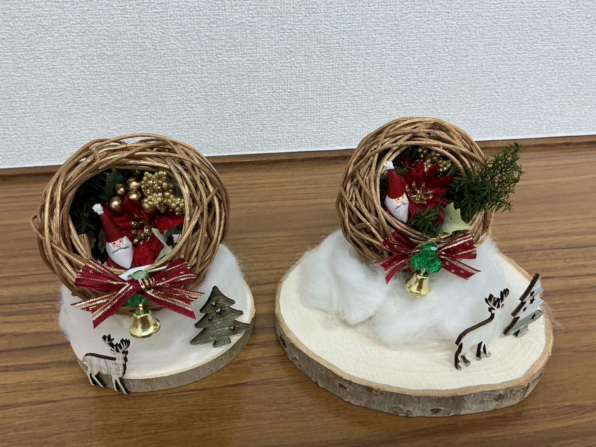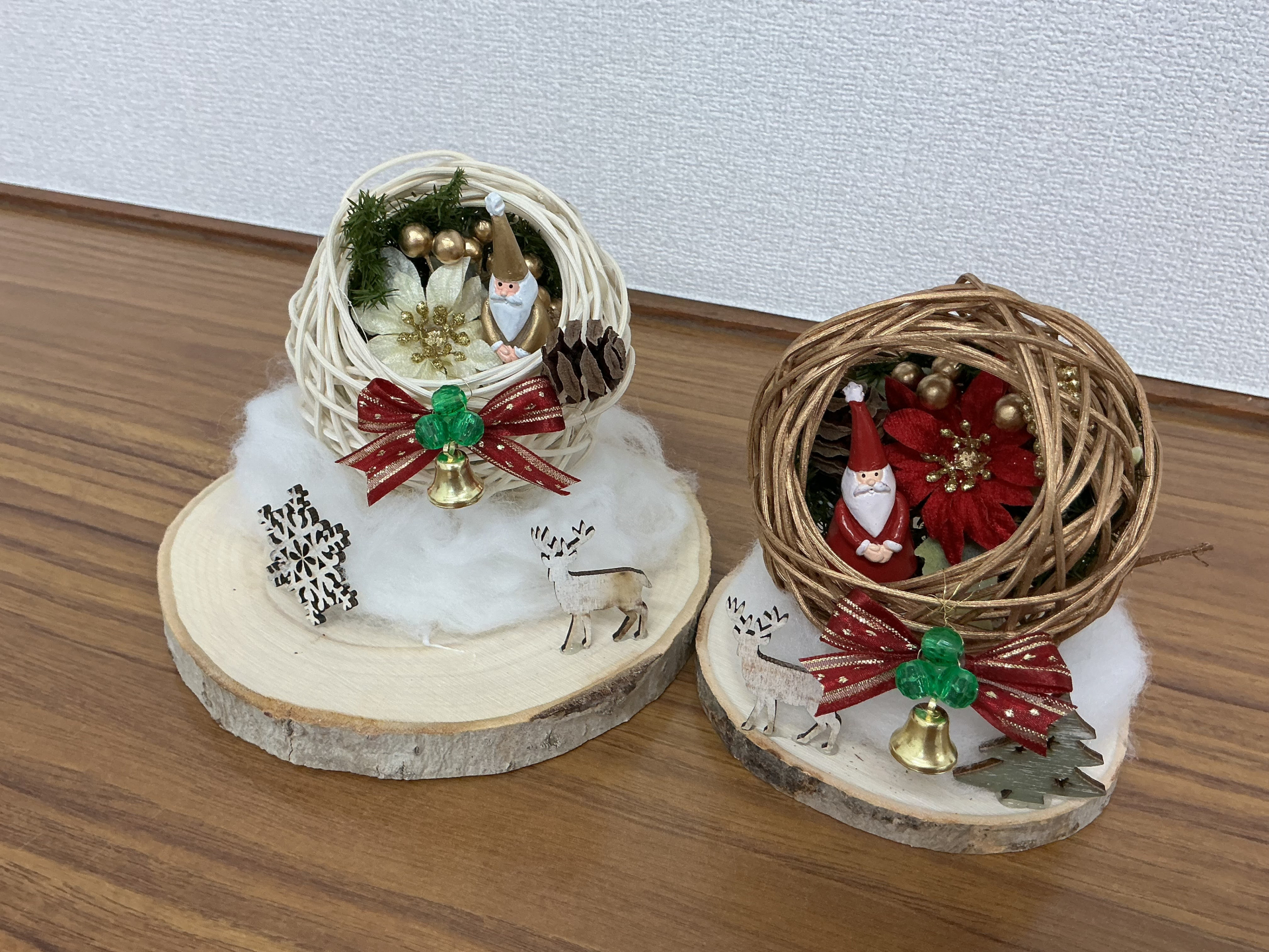 ラタンボールの中にサンタさんやお花を入れ込んで…