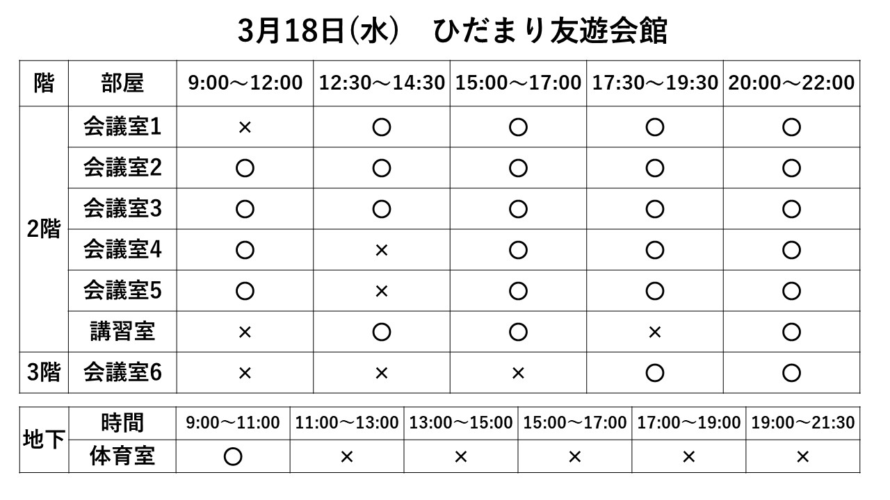 2026.02.01 お知らせ 3/15~3/21利用状況 Tweet シェアする 3/15~3/21までの利用状況です ※2/2現在 ※最新情報はお電話でお問合せ下さい ひだまり友遊会館 寺﨑 前の記事 2026.02.01 お知らせ 3/22~3/31利用状況 次の記事 2026.02.01 お知らせ 3/8~3/14利用状況 一覧へ戻る