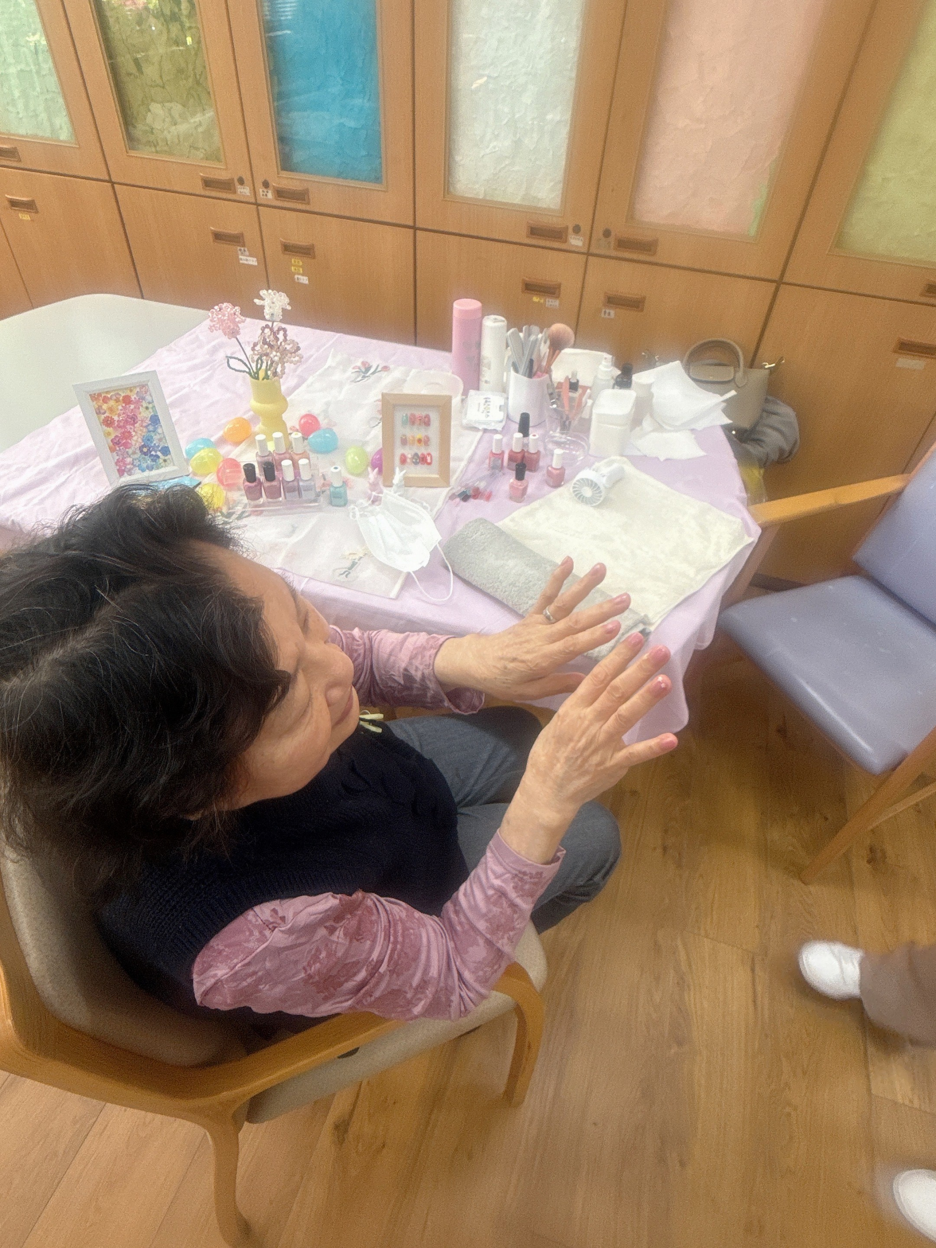 2025.04.21 活動報告 ネイルサロン Tweet シェアする 今日は皆様がネイルサロンを参加しておりました。綺麗なネイルができました。 ひがしデイのゴーティモ 前の記事 2025.04.22 活動報告 新しい床 次の記事 2025.04.19 活動報告 十音の会 一覧へ戻る