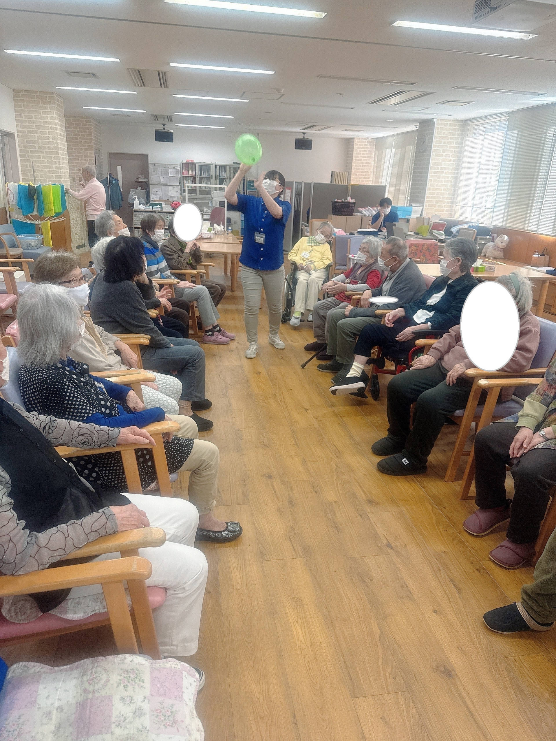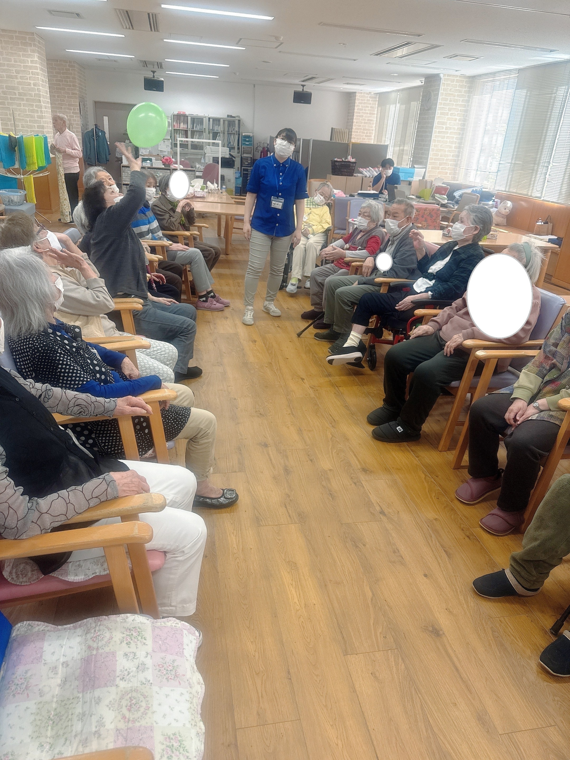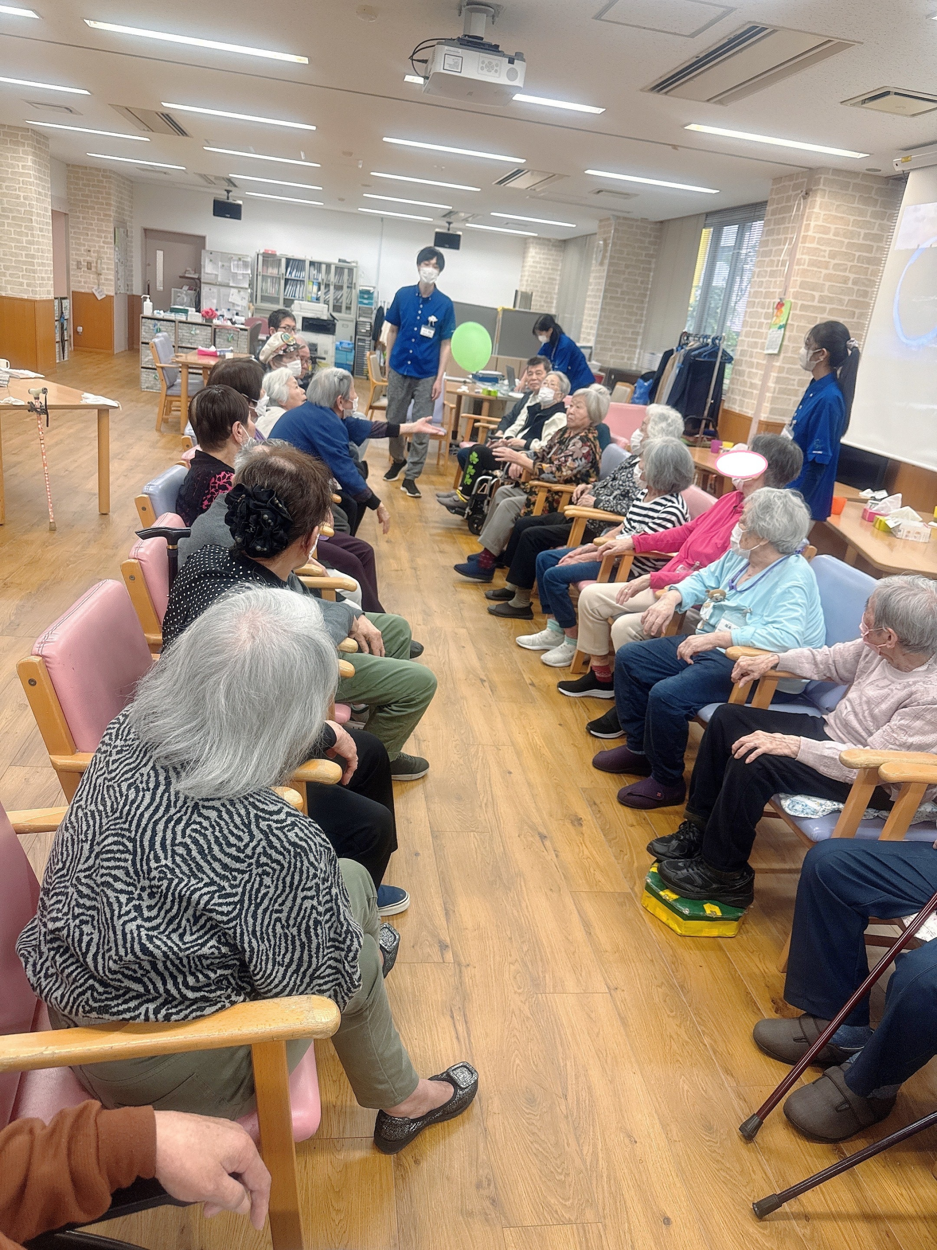 2025.05.02 活動報告 風船バレーゲーム Tweet シェアする 今日は「風船バレー」でした。風船が床に落ちないように上を向いて行方を追い、自分の所に来たら手を伸ばして上に上げ、一所懸命されていました。結構白熱なのですよ^-^ ひがしデイのゴーティモ 前の記事 2025.05.03 活動報告 5月最初のお誕生日会 次の記事 2025.05.01 活動報告 棒体操 一覧へ戻る