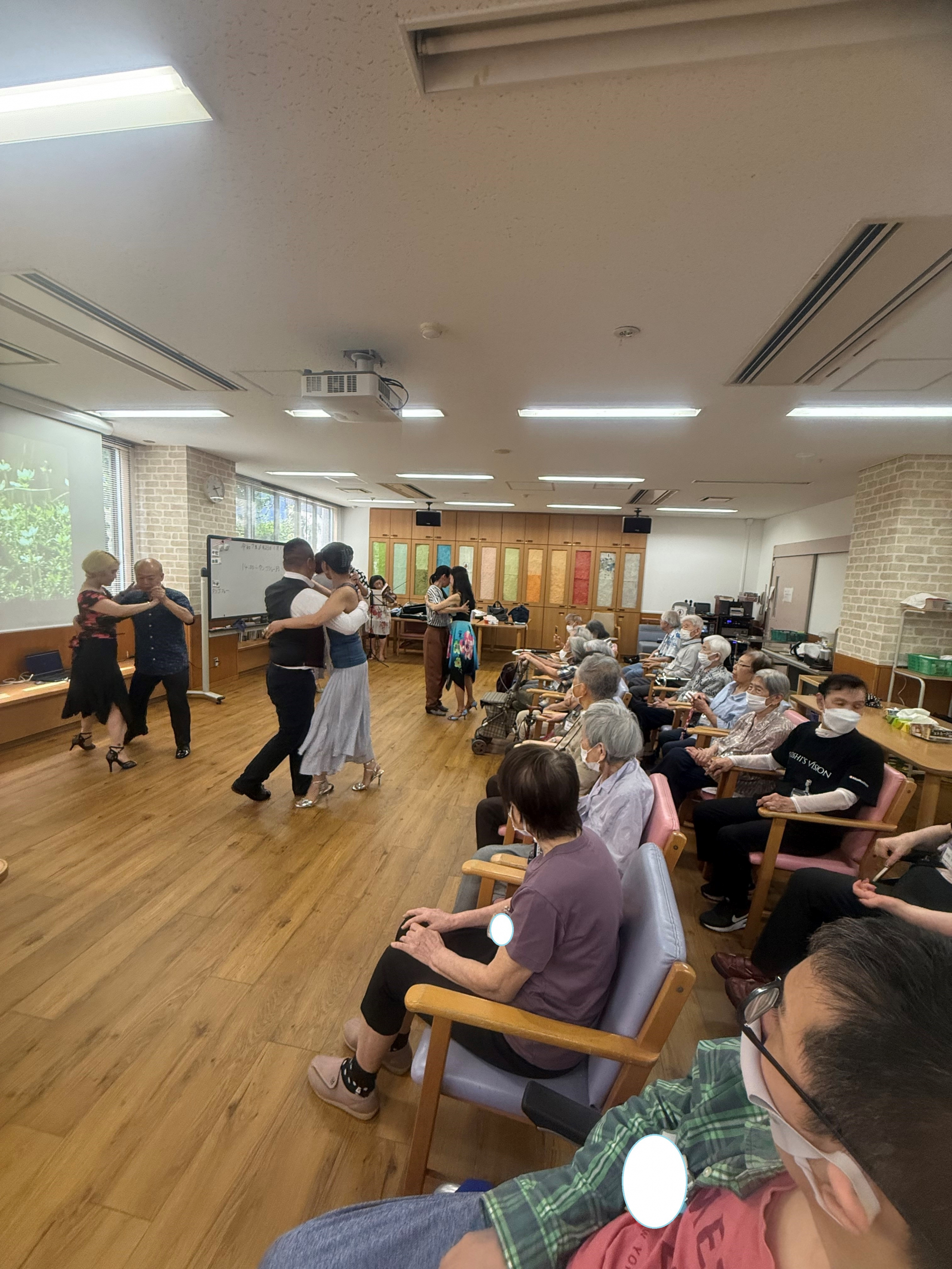 2025.06.23 活動報告 タンゴショー Tweet シェアする 本日はタンゴショーのボランティアの方が来て下さり、タンゴを披露して下さいました。リズムとテンポの良い音楽を聞きながら楽しまれておりました。 ひがしデイのゴーティモ 前の記事 2025.06.24 活動報告 おやつ作り(フルーツポンチ) 次の記事 2025.06.20 活動報告 個別トレーニング頑張ってます。 一覧へ戻る