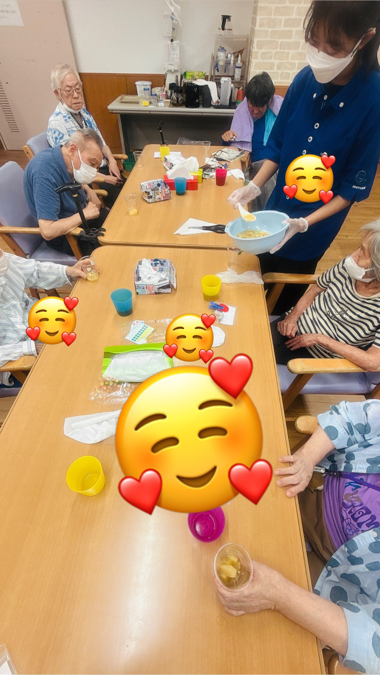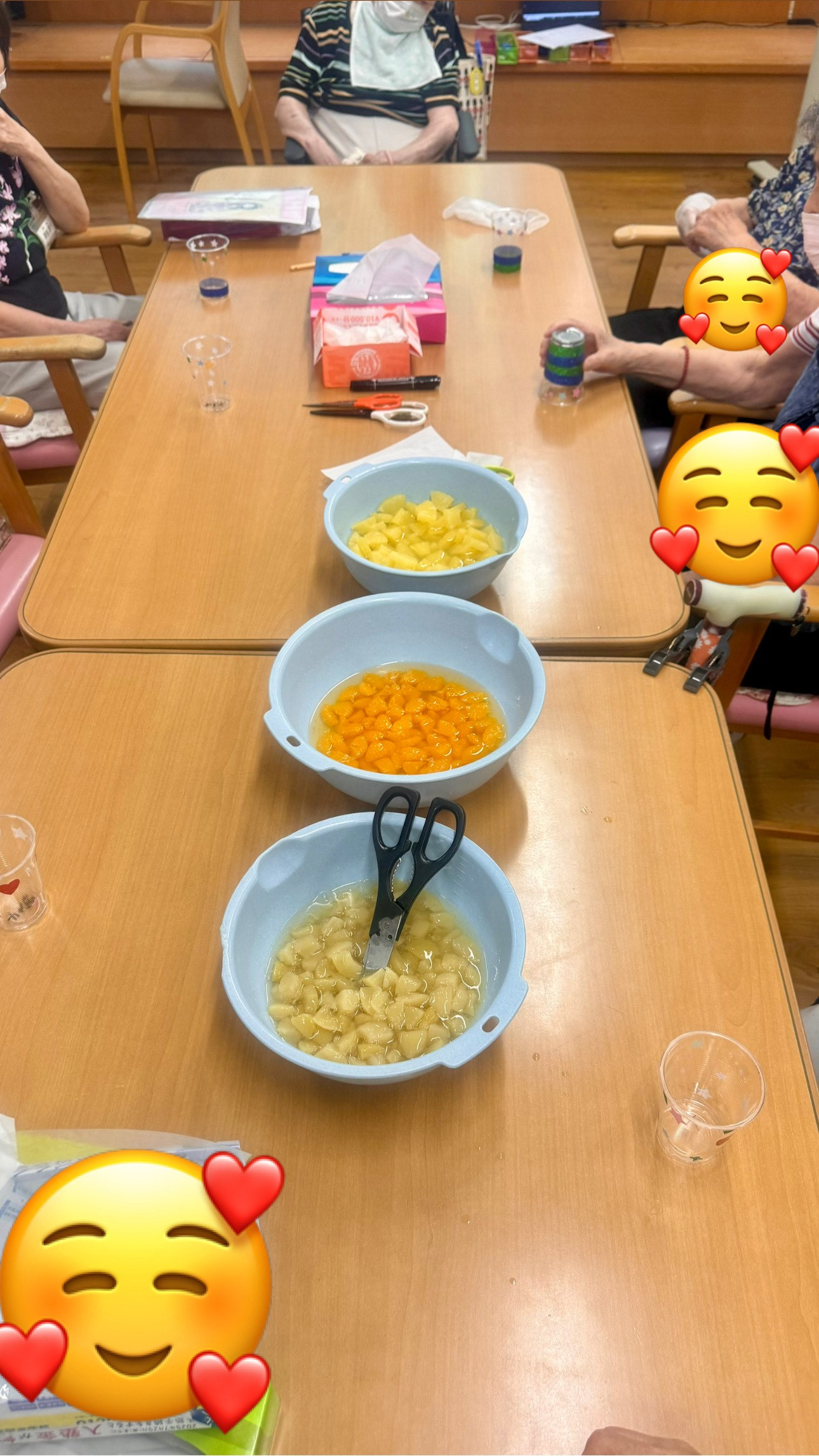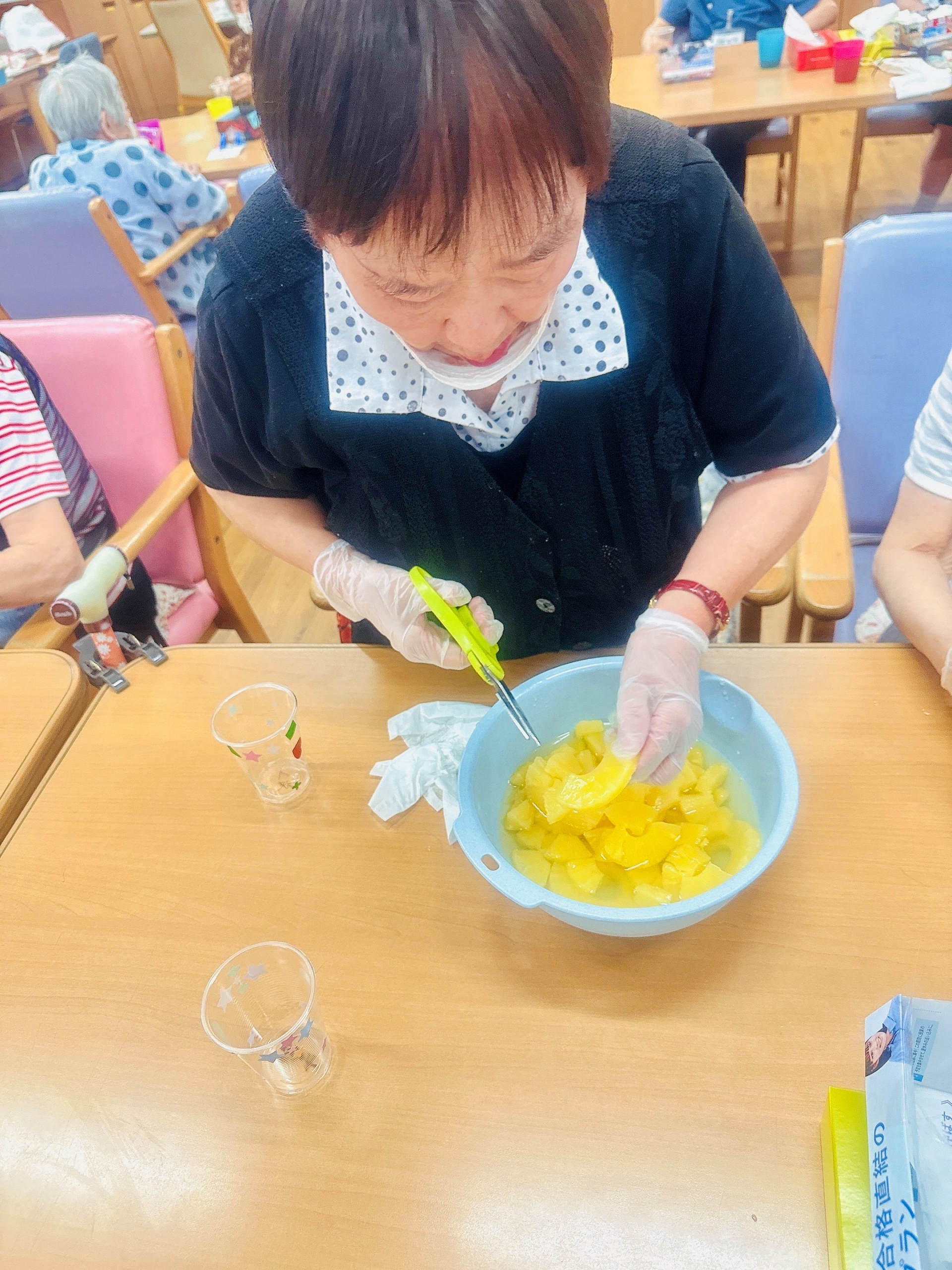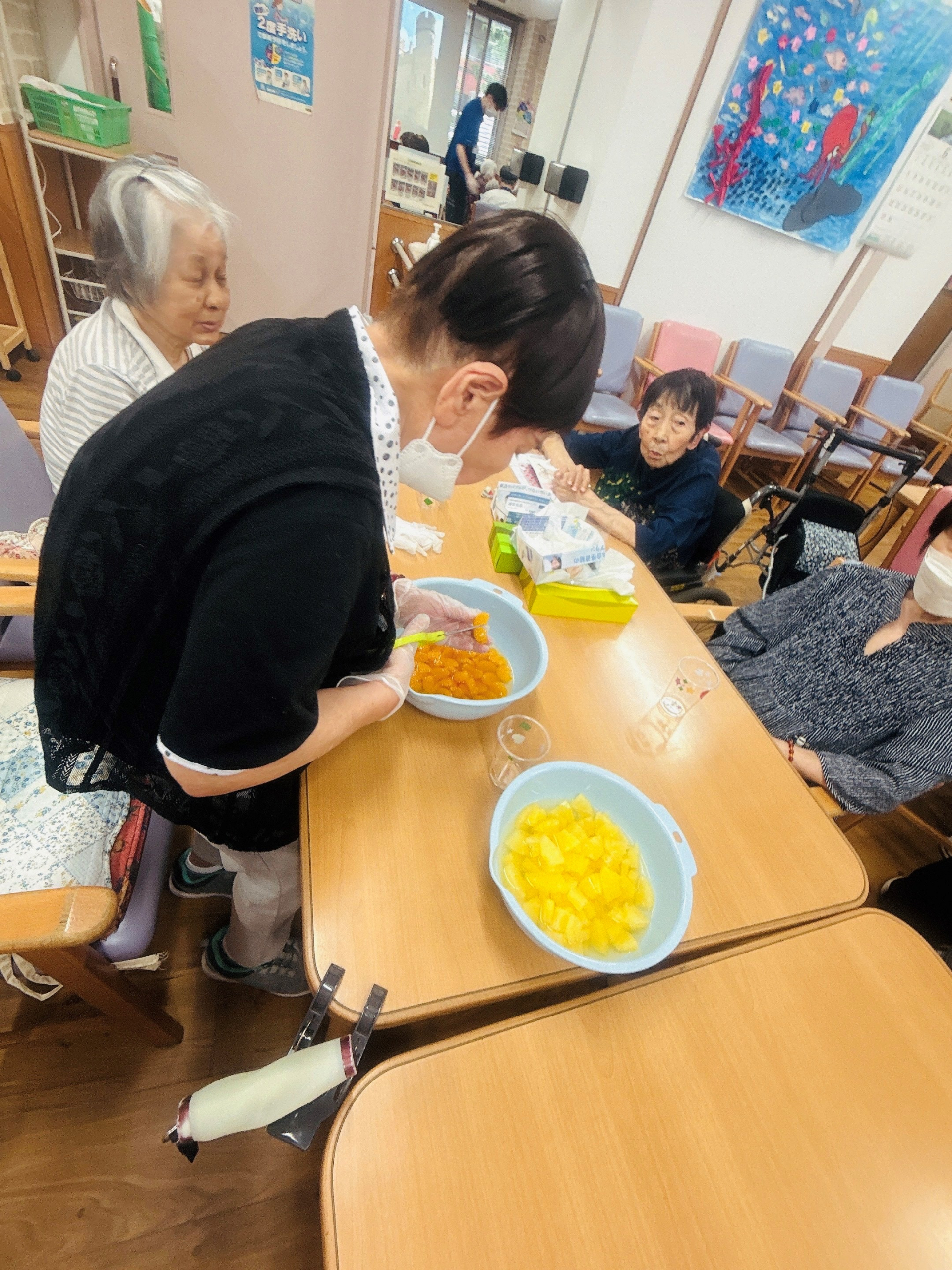 2025.06.24 活動報告 おやつ作り(フルーツポンチ) Tweet シェアする 本日は「おやつ作り」で『フルーツポンチ』を作りました。透明なカップをシールでデコレーションし、そこに果物や炭酸飲料を入れ、涼しげな目でも楽しいおやつが出来上がりました。 ひがしデイのゴーティモ 前の記事 2025.07.03 活動報告 七夕飾り作り(お願いことを書く) 次の記事 2025.06.23 活動報告 タンゴショー 一覧へ戻る
