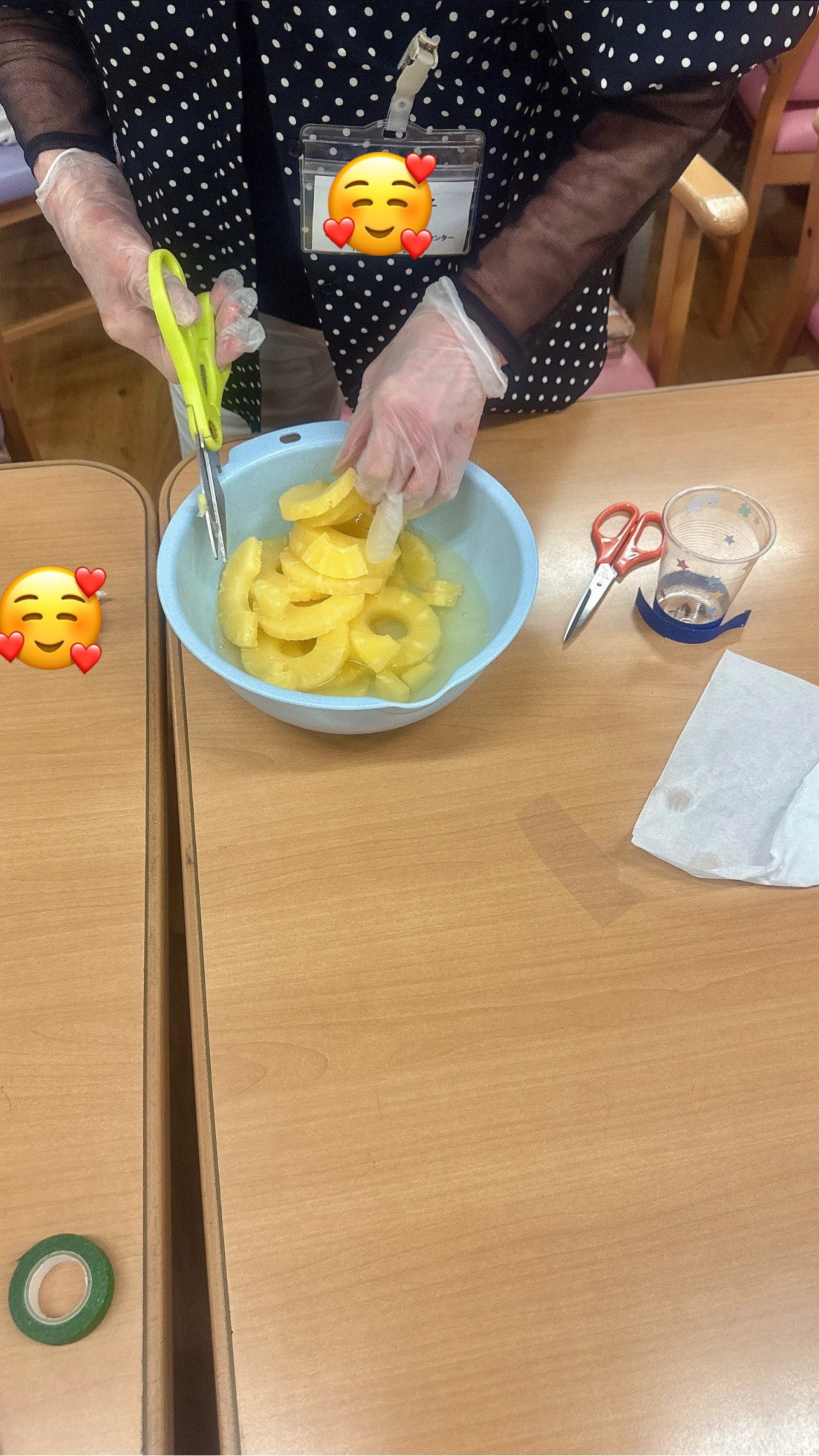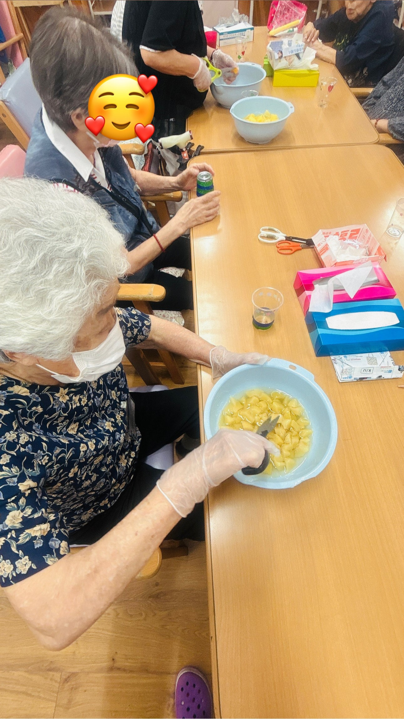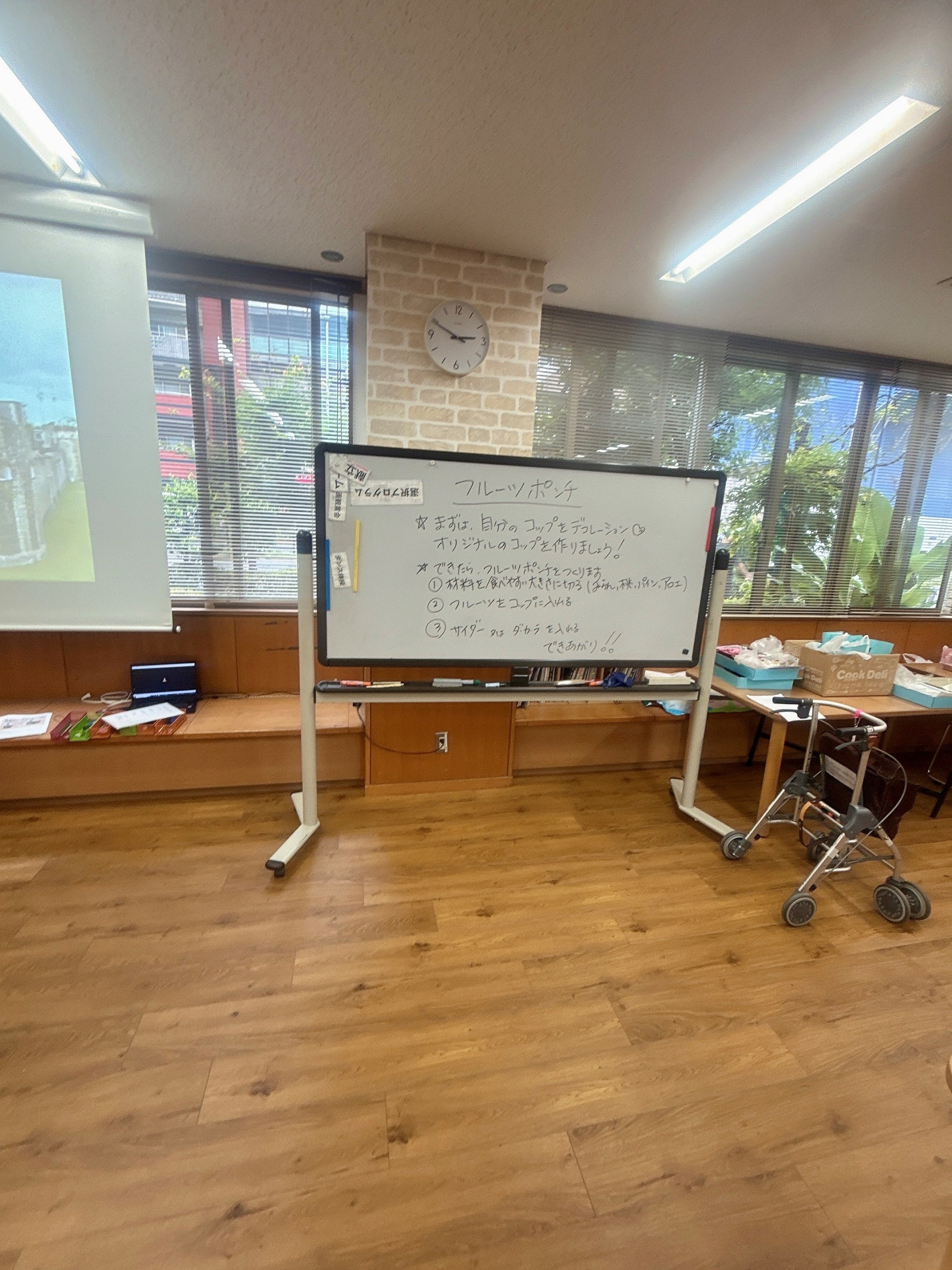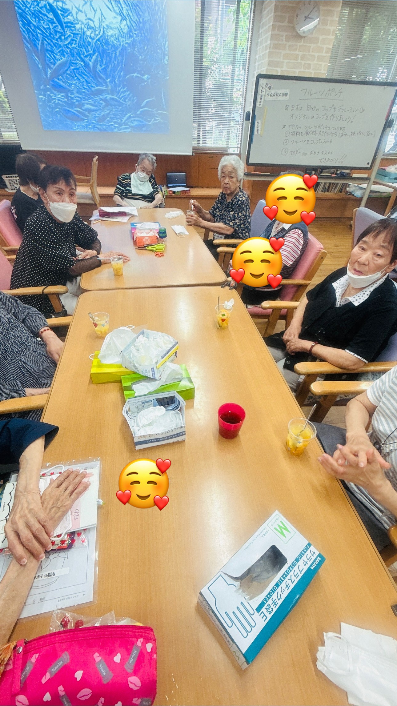 2025.06.24 活動報告 おやつ作り(フルーツポンチ) Tweet シェアする 本日は「おやつ作り」で『フルーツポンチ』を作りました。透明なカップをシールでデコレーションし、そこに果物や炭酸飲料を入れ、涼しげな目でも楽しいおやつが出来上がりました。 ひがしデイのゴーティモ 前の記事 2025.07.03 活動報告 七夕飾り作り(お願いことを書く) 次の記事 2025.06.23 活動報告 タンゴショー 一覧へ戻る
