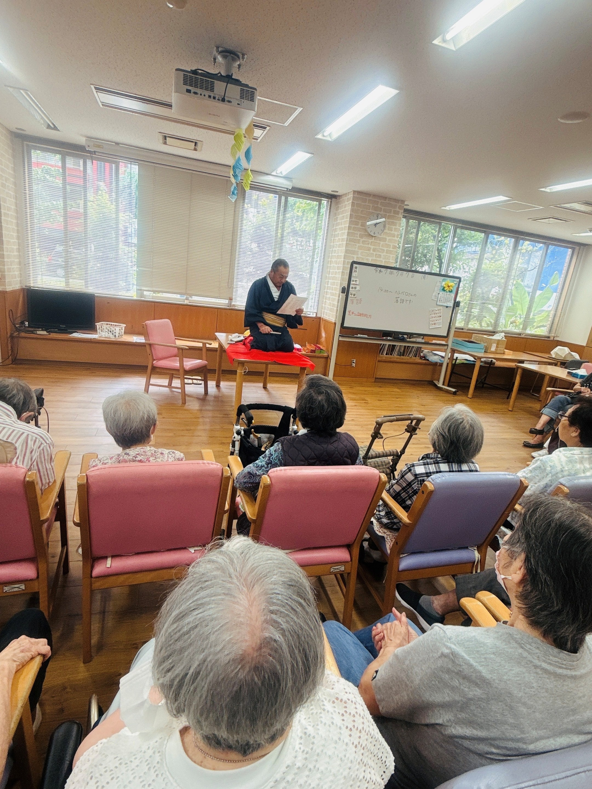2025.07.07 活動報告 落語 Tweet シェアする 今日はヘトベロさんの落語を聞き、楽しまれております。 ひがしデイのゴーティモ 前の記事 2025.07.08 活動報告 ゲーム(パターゴルフ) 次の記事 2025.07.05 活動報告 七夕飾り完成 一覧へ戻る