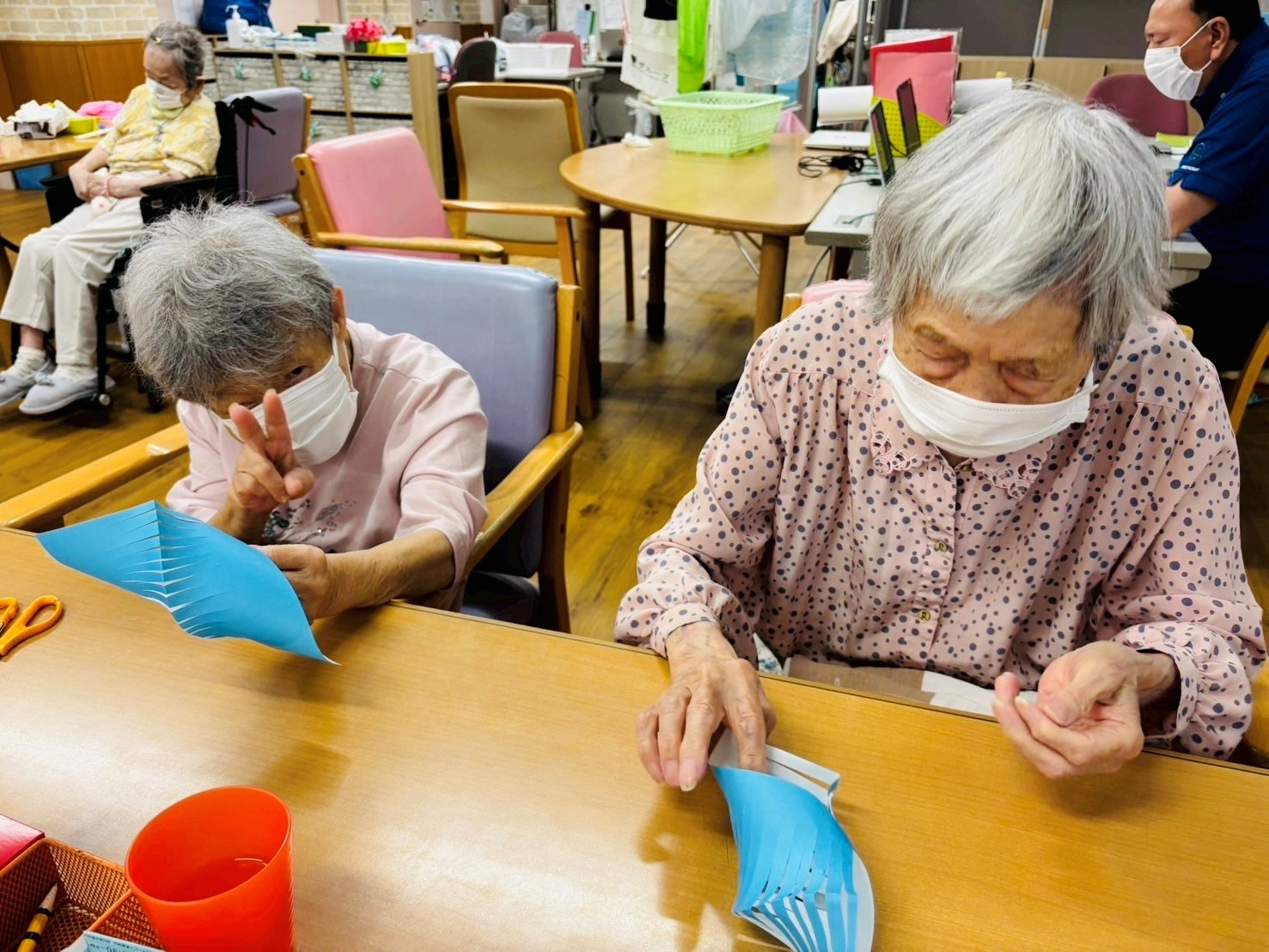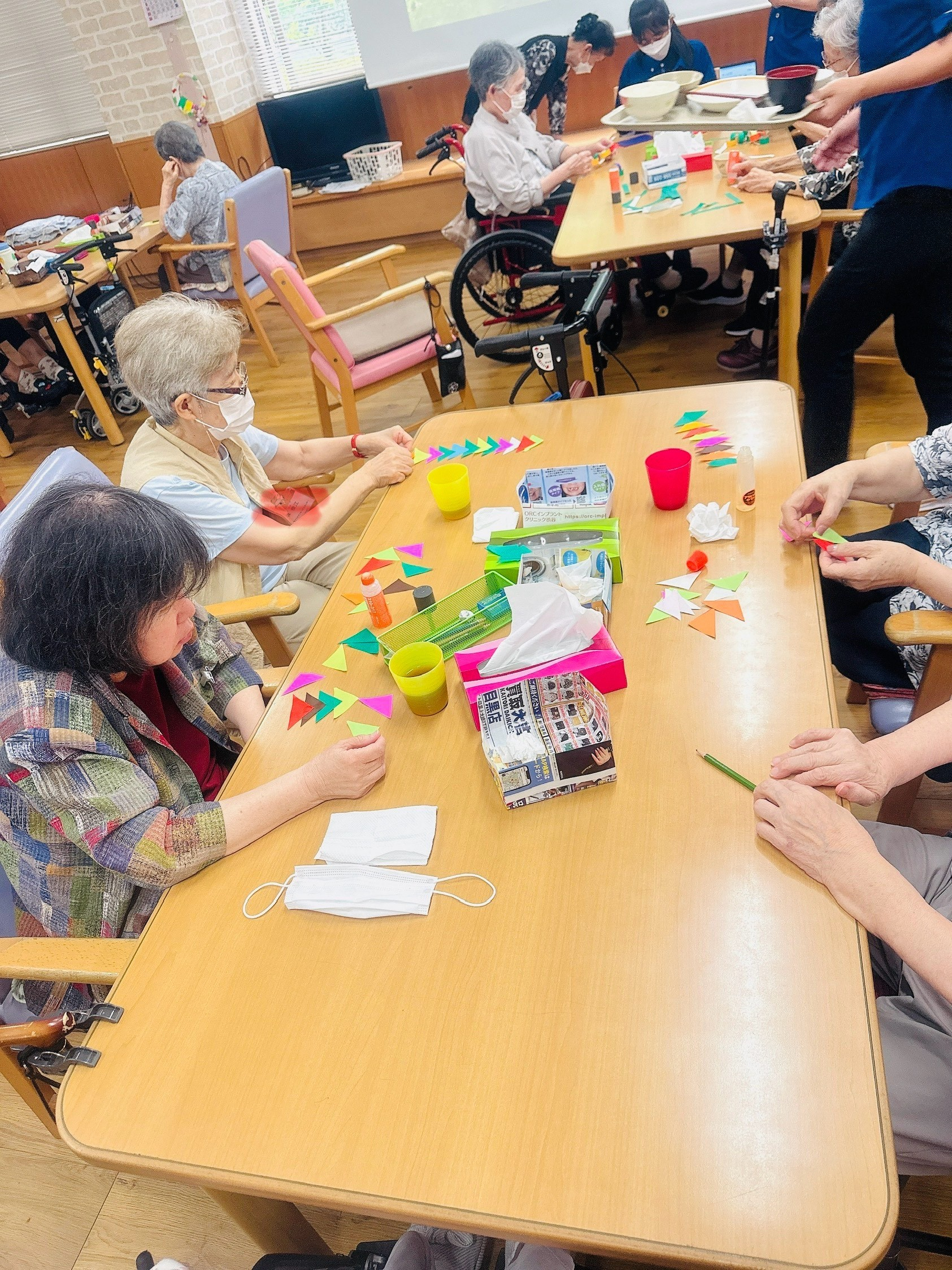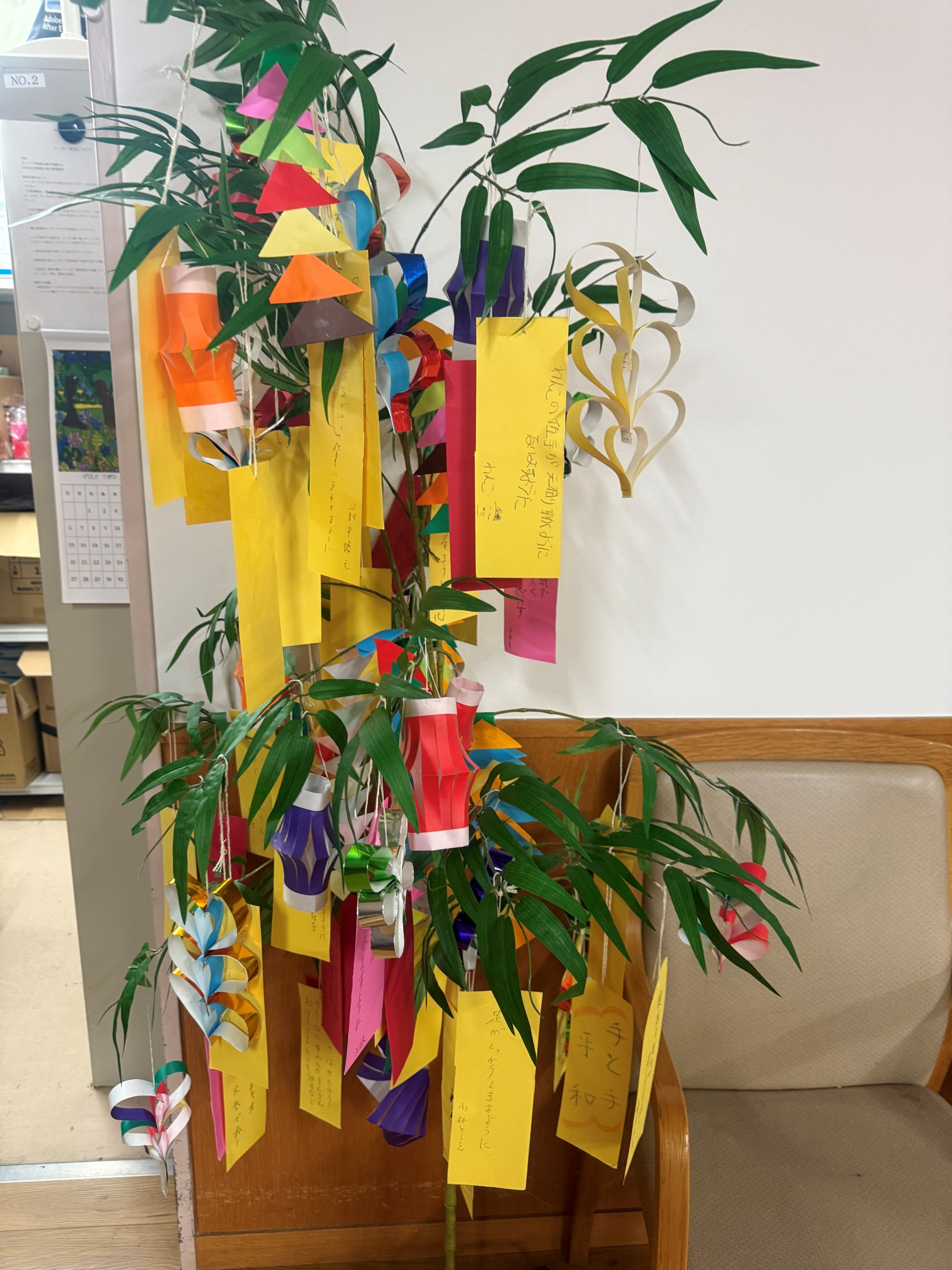 2025.07.05 活動報告 七夕飾り完成 Tweet シェアする 今日「七夕飾り作り」最終日でした。出来上がった飾りや短冊を笹にみんなで付けました。 ひがしデイのゴーティモ 前の記事 2025.07.07 活動報告 落語 次の記事 2025.07.05 活動報告 お誕生日会 一覧へ戻る