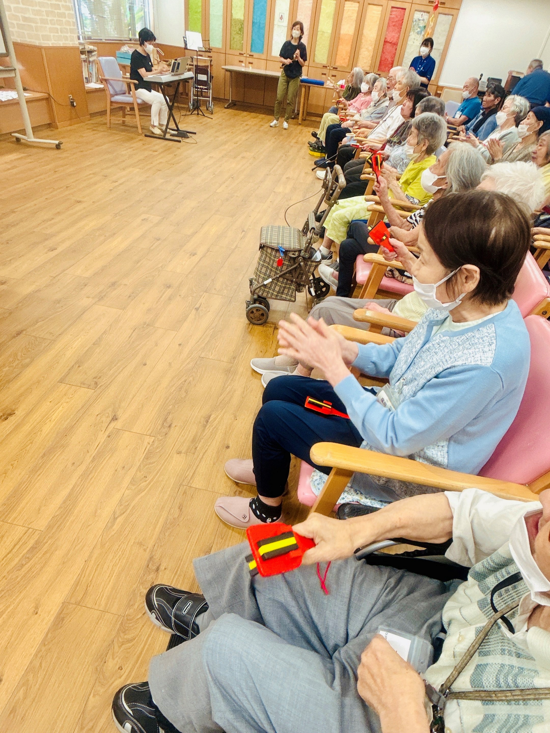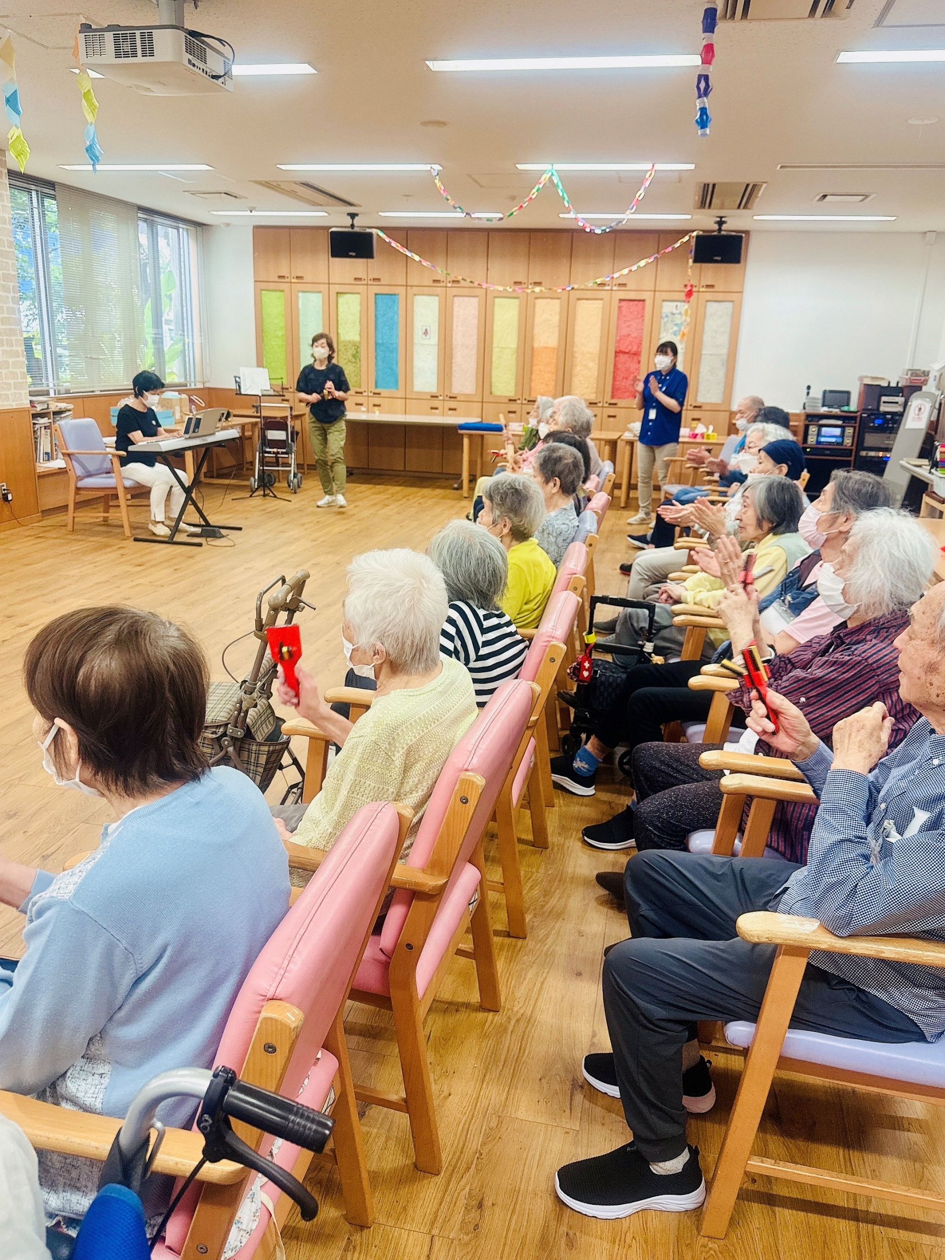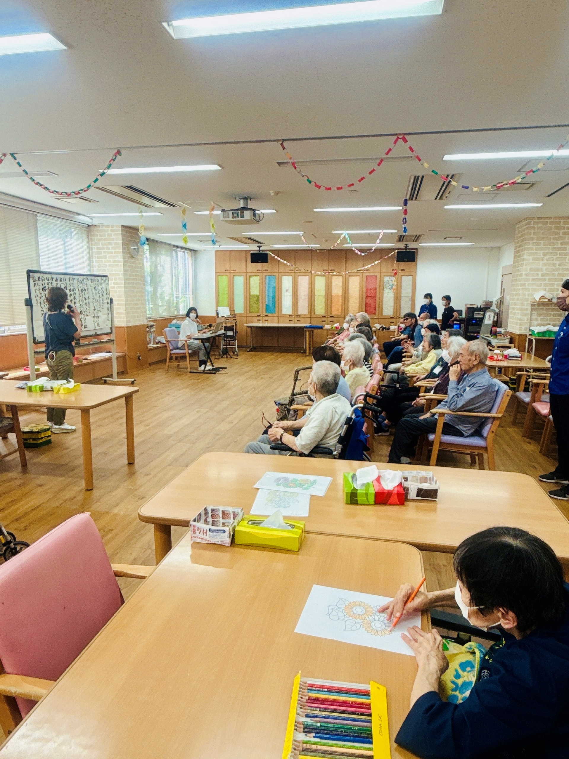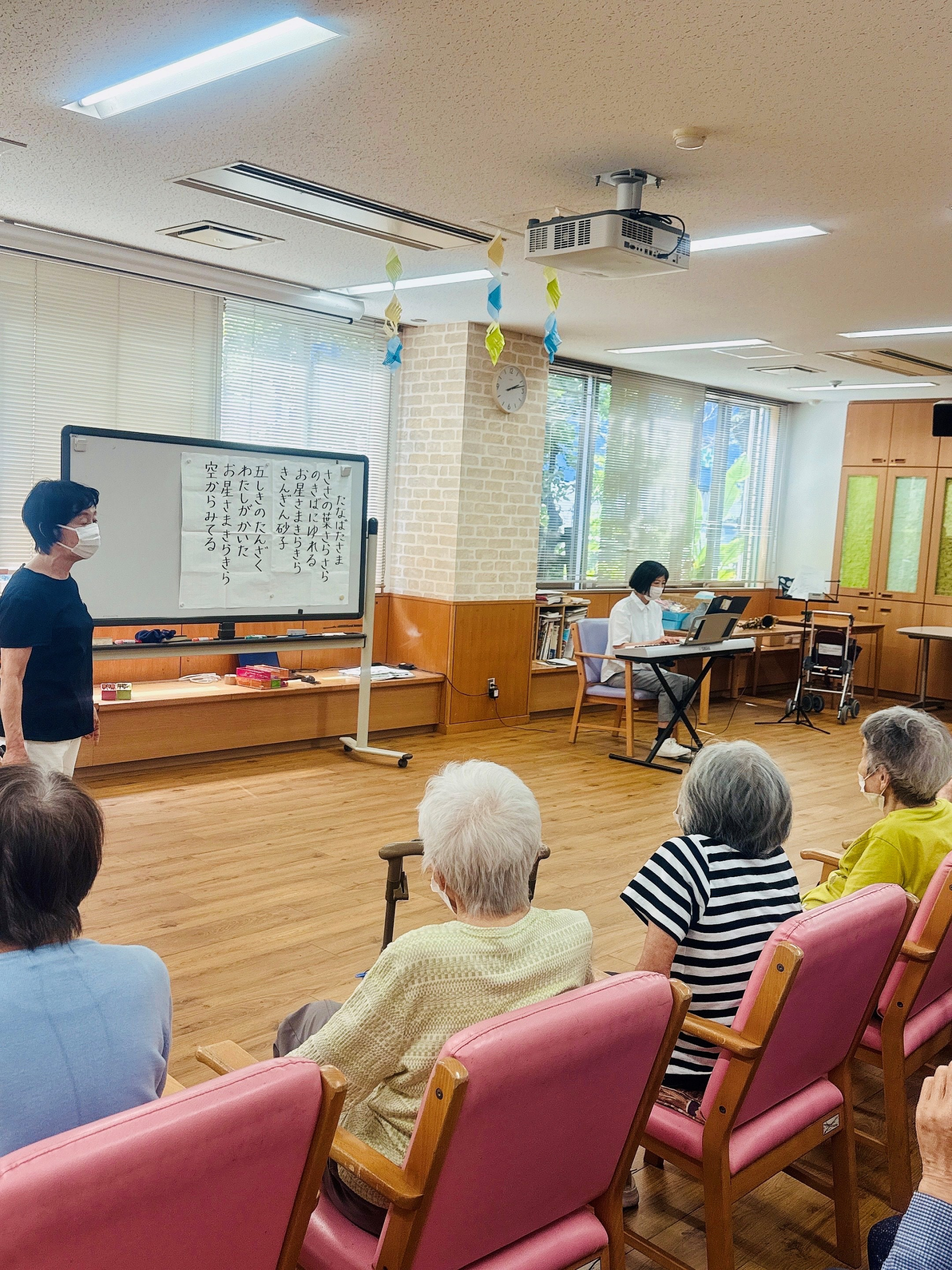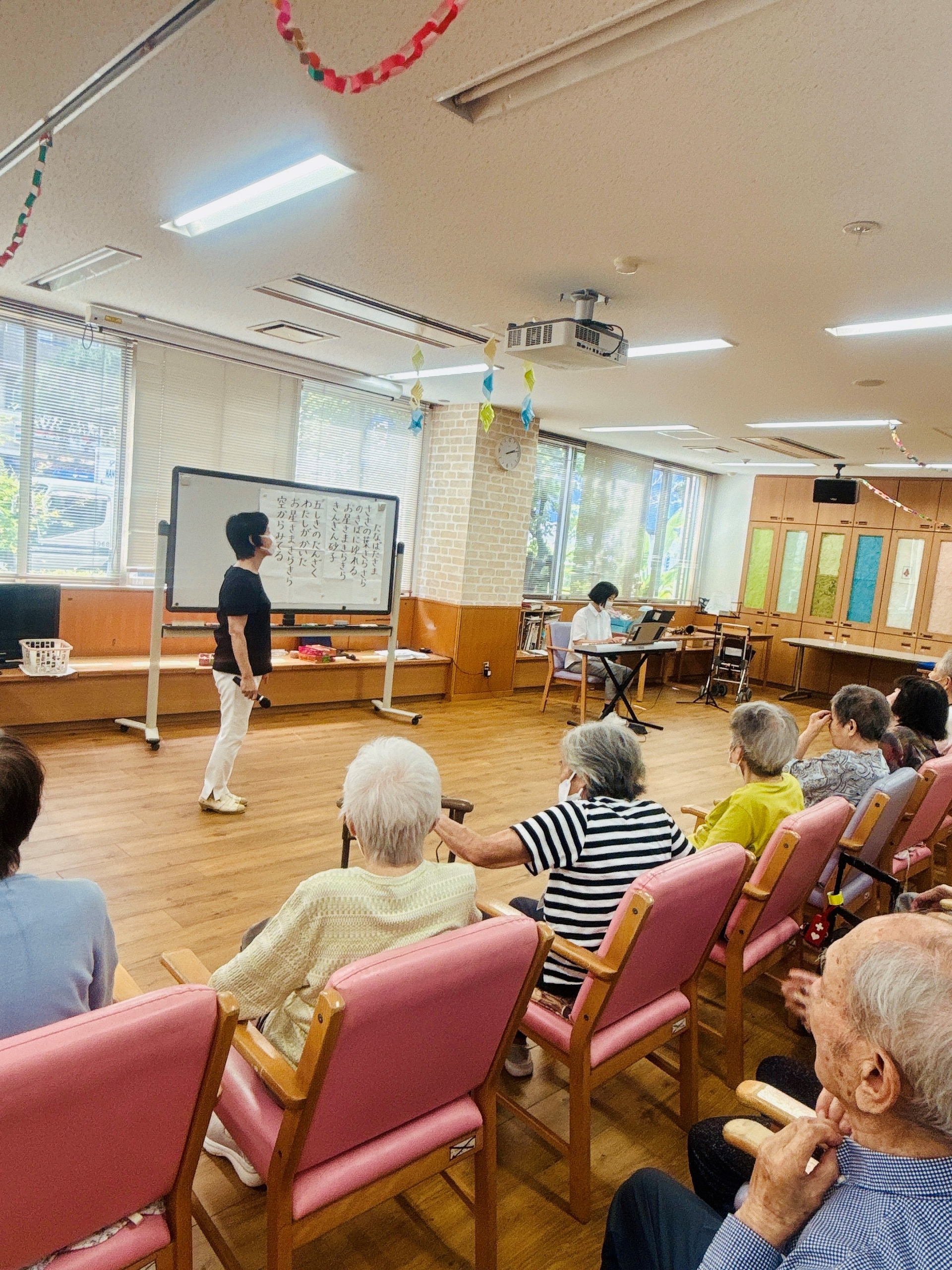 2025.07.12 活動報告 十音の会 Tweet シェアする 本日は十音(とおん)の会のボランティアの方が来て下さっております。初めに発声練習を行いました。その後、「ハナミズキ」を伴奏つきで皆さんで歌いました。 ひがしデイのゴーティモ 前の記事 2025.07.14 活動報告 輪投げゲーム 次の記事 2025.07.11 活動報告 ゲーム(ミニサッカー) 一覧へ戻る