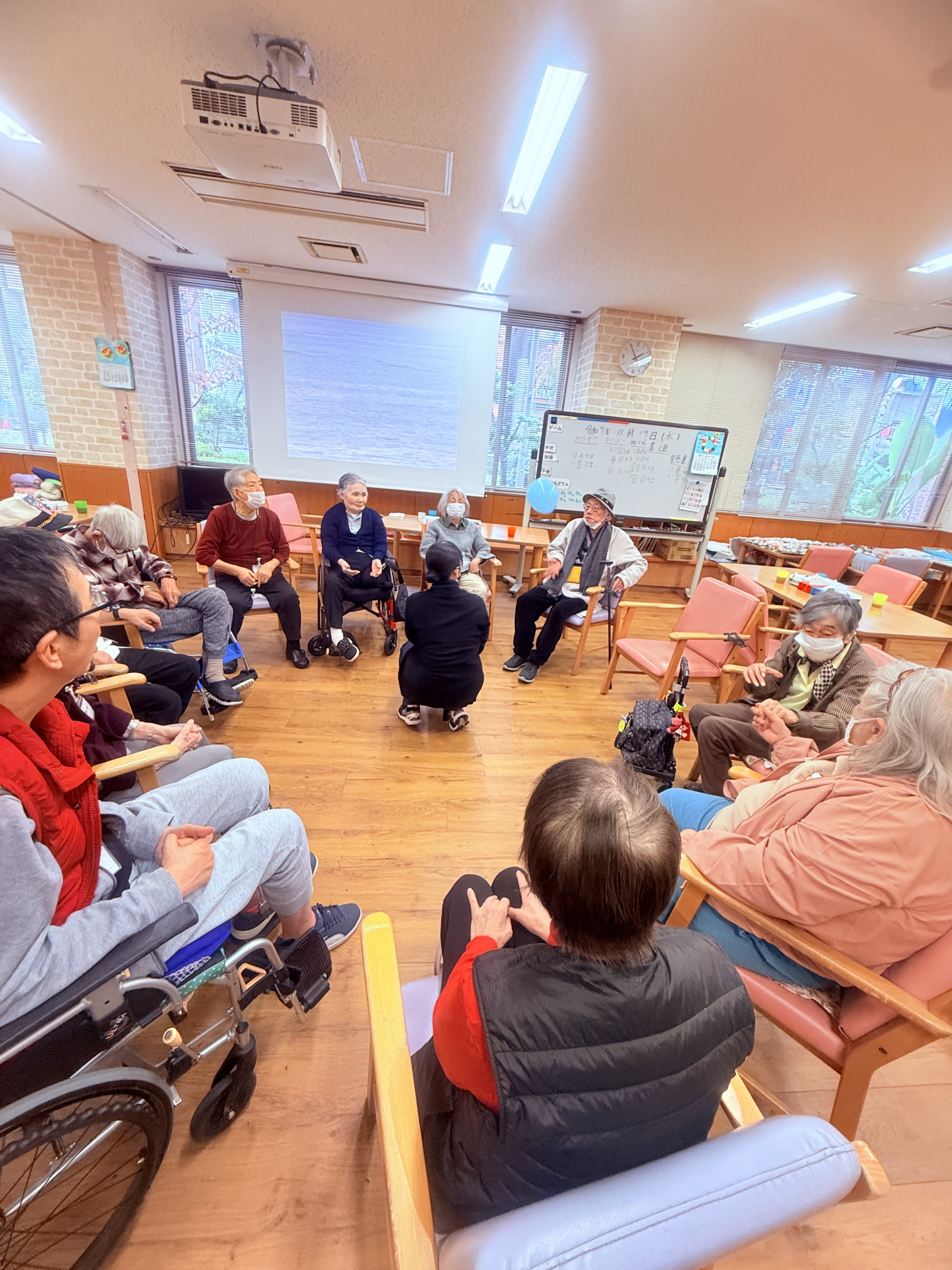 2025.11.19 活動報告 ゲーム(風船バレー) Tweet シェアする 本日は学生さんとご利用者様一緒風船バレーゲームを参加しておりました。楽しかったです。 ひがしデイのゴーティモ 前の記事 2025.11.19 活動報告 選択プログラム 次の記事 2025.11.17 活動報告 傘雨ゲーム 一覧へ戻る