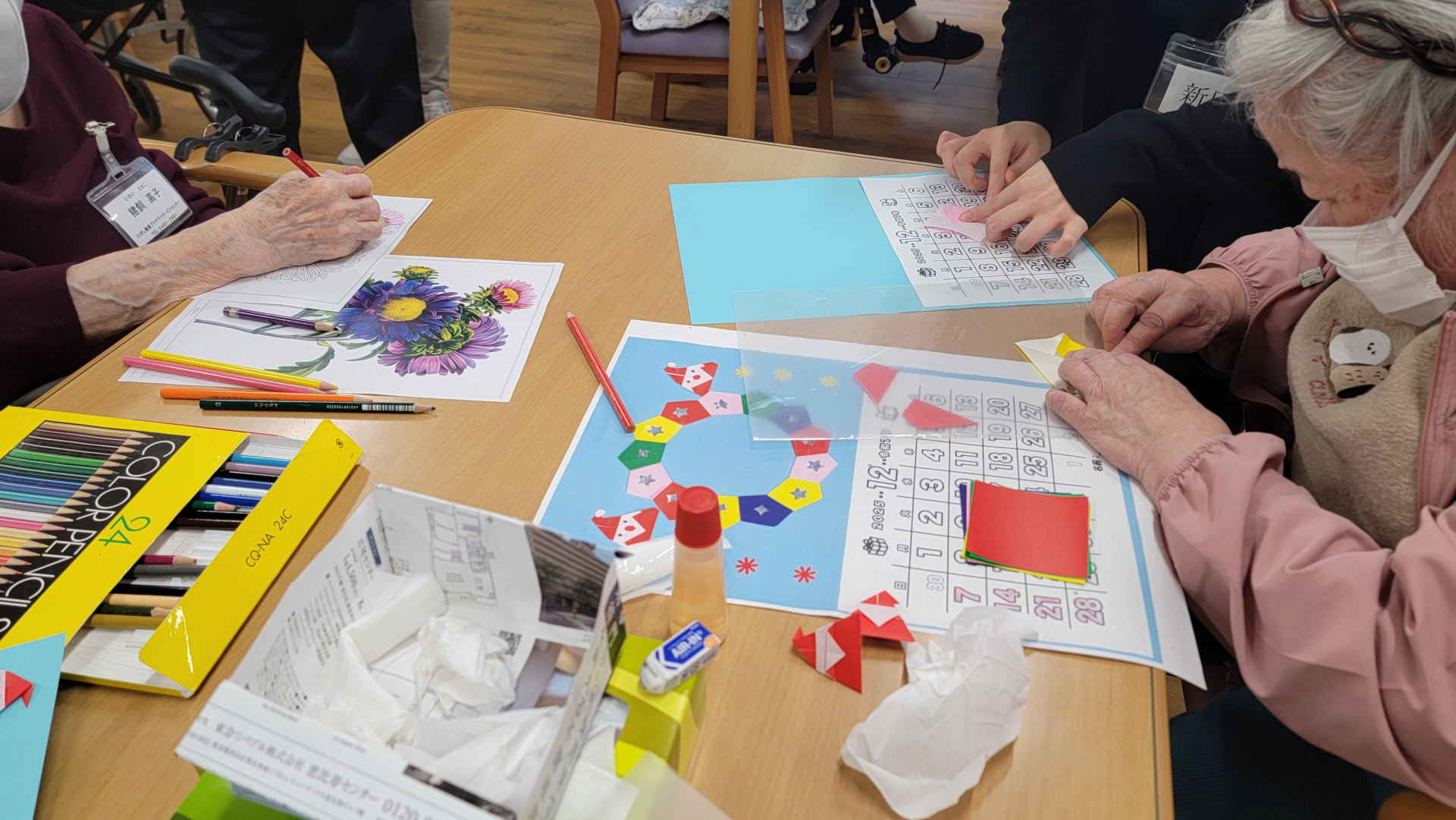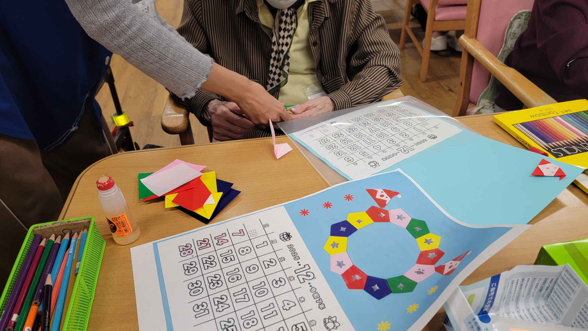 2025.11.19 活動報告 選択プログラム Tweet シェアする 本日は選択プログラムを実施しました。カレンダー作り、カラオケ、塗り絵、書道、ペン習字、将棋に取り組まれております。 ひがしデイのゴーティモ 前の記事 2025.11.20 活動報告 ヘアカット 次の記事 2025.11.19 活動報告 ゲーム(風船バレー) 一覧へ戻る