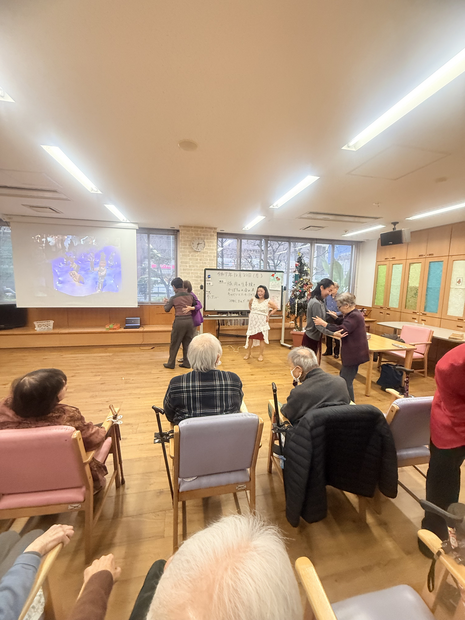 2025.12.22 活動報告 タンゴショー Tweet シェアする 本日はタンゴショーのボランティアの先生が来て下さっております。バイオリンの演奏を聴き、タンゴを観て楽しみました。 ひがしデイのゴーティモ 前の記事 2025.12.25 活動報告 クリスマス会 次の記事 2025.12.19 活動報告 選択プログラム 一覧へ戻る