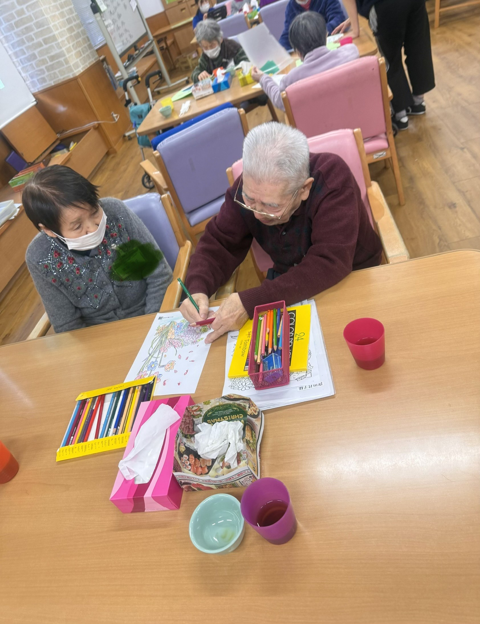 2026.01.08 活動報告 塗り絵 Tweet シェアする 本日はA様とB様一緒に塗り絵を参加しておりました。綺麗な塗り絵が出来ました。 ひがしデイのゴーティモ 前の記事 2026.01.09 活動報告 ゲーム(風船バレー) 次の記事 2026.01.07 活動報告 初詣 一覧へ戻る