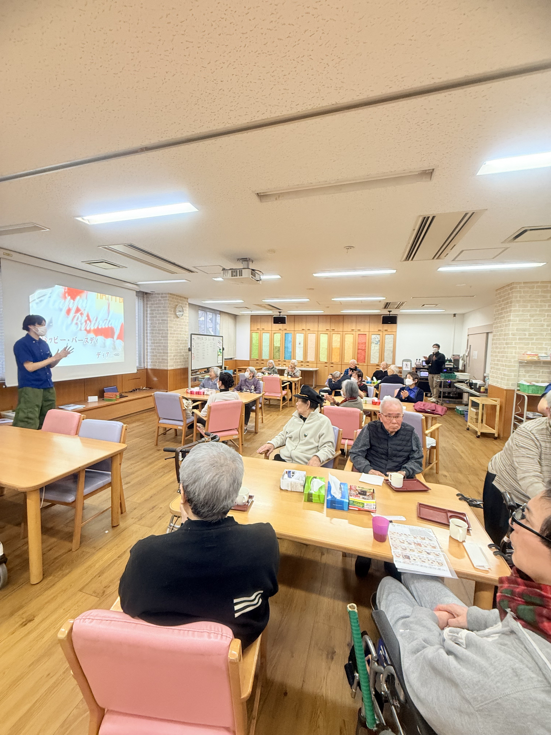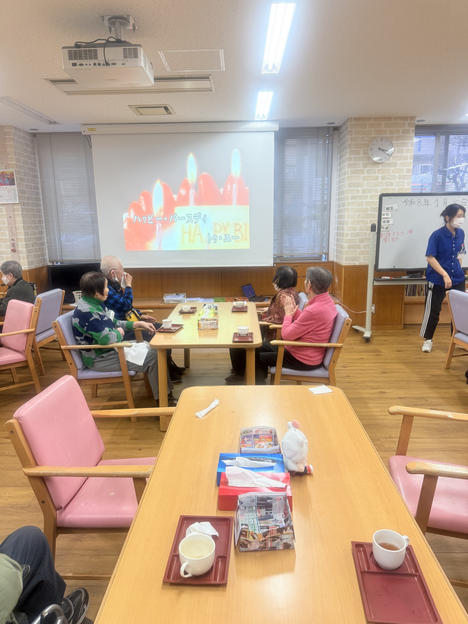 2026.01.10 活動報告 お誕生日会 Tweet シェアする 本日はお誕生日会がありました。皆さんと一緒ハッピーバースデーの歌を歌いました。笑顔が見られました。 ひがしデイのゴーテイモ 前の記事 2026.01.12 活動報告 ゲーム(傘雨) 次の記事 2026.01.09 活動報告 並び替えクイズ 一覧へ戻る