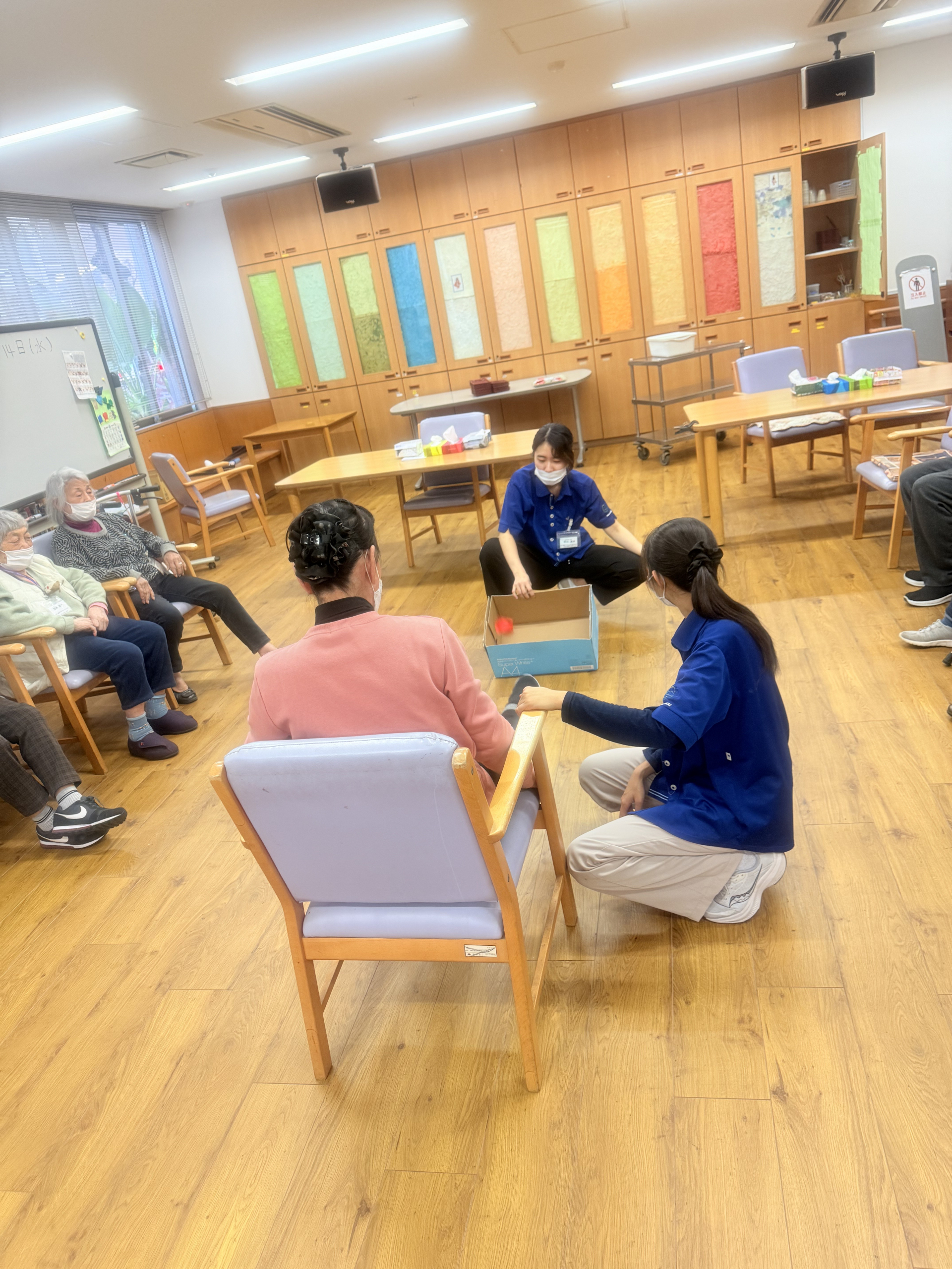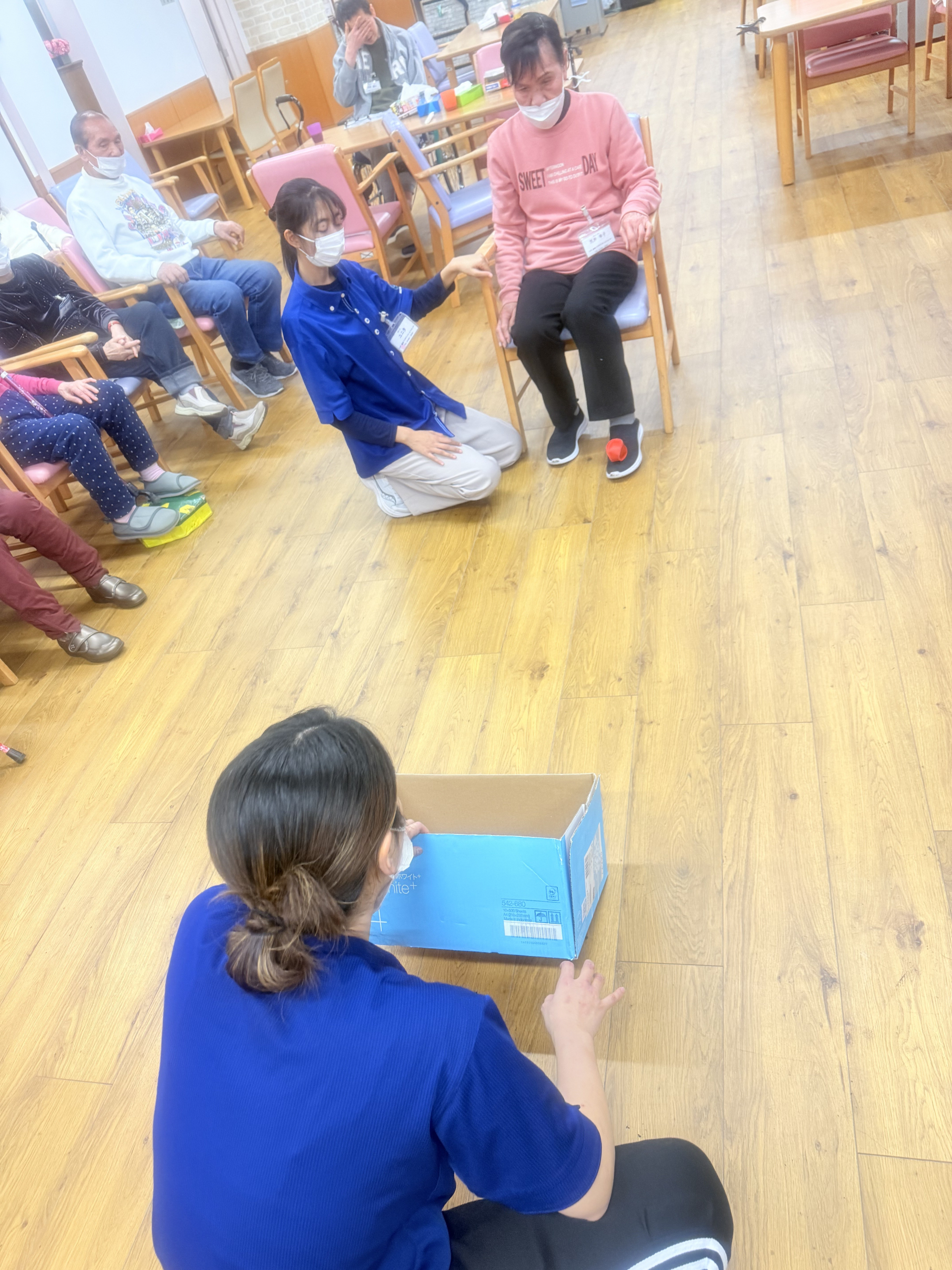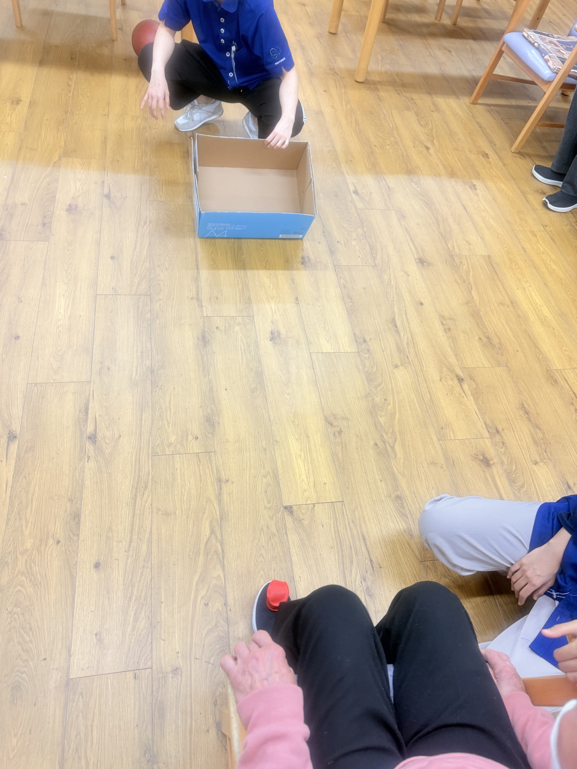 2026.01.14 活動報告 ゲーム(ボール飛ばし) Tweet シェアする 今日は「ボール飛ばしゲーム」でした。「足の甲に小さなボールを載せて、せーので段ボールの中に入れる」というのを行いました。 ひがしデイのゴーティモ 前の記事 2026.01.15 活動報告 落語 次の記事 2026.01.12 活動報告 ゲーム(傘雨) 一覧へ戻る