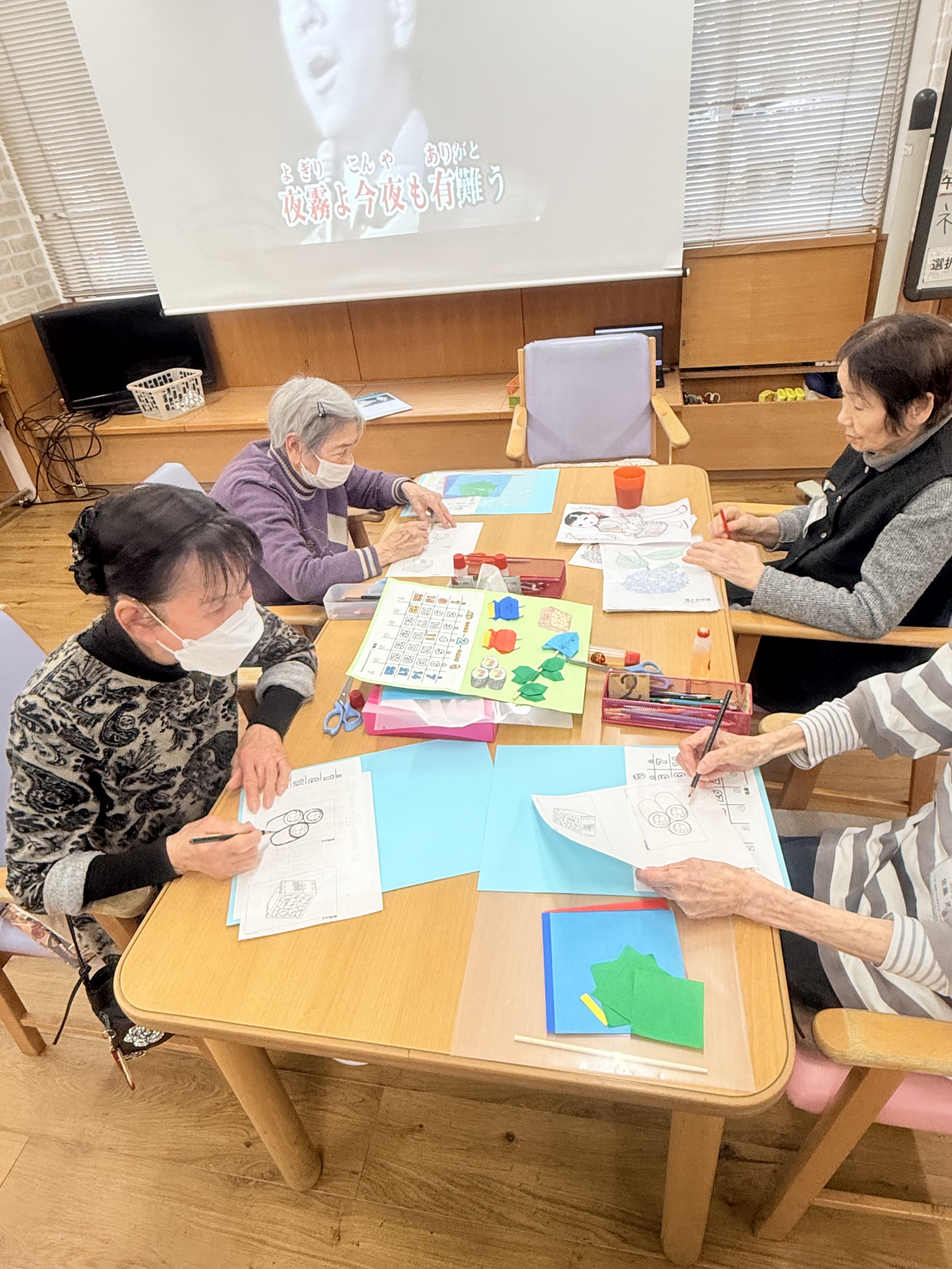 2026.01.19 活動報告 選択プログラム Tweet シェアする 今日は「選択プログラム」でいつものように、2月のカレンダー作り、カラオケ、書道、将棋、読書の中からお好きな活動を選んで取り組んでいただきました。 ひがしデイのゴーティモ 前の記事 2026.01.20 活動報告 福笑いゲーム 次の記事 2026.01.19 活動報告 ネイルサロン 一覧へ戻る
