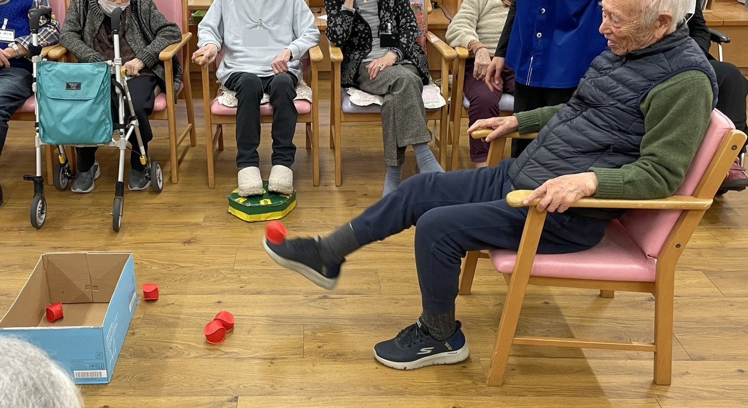 今日は、先日午後のレクとして行った「ボール飛ばしゲーム」をご紹介します。