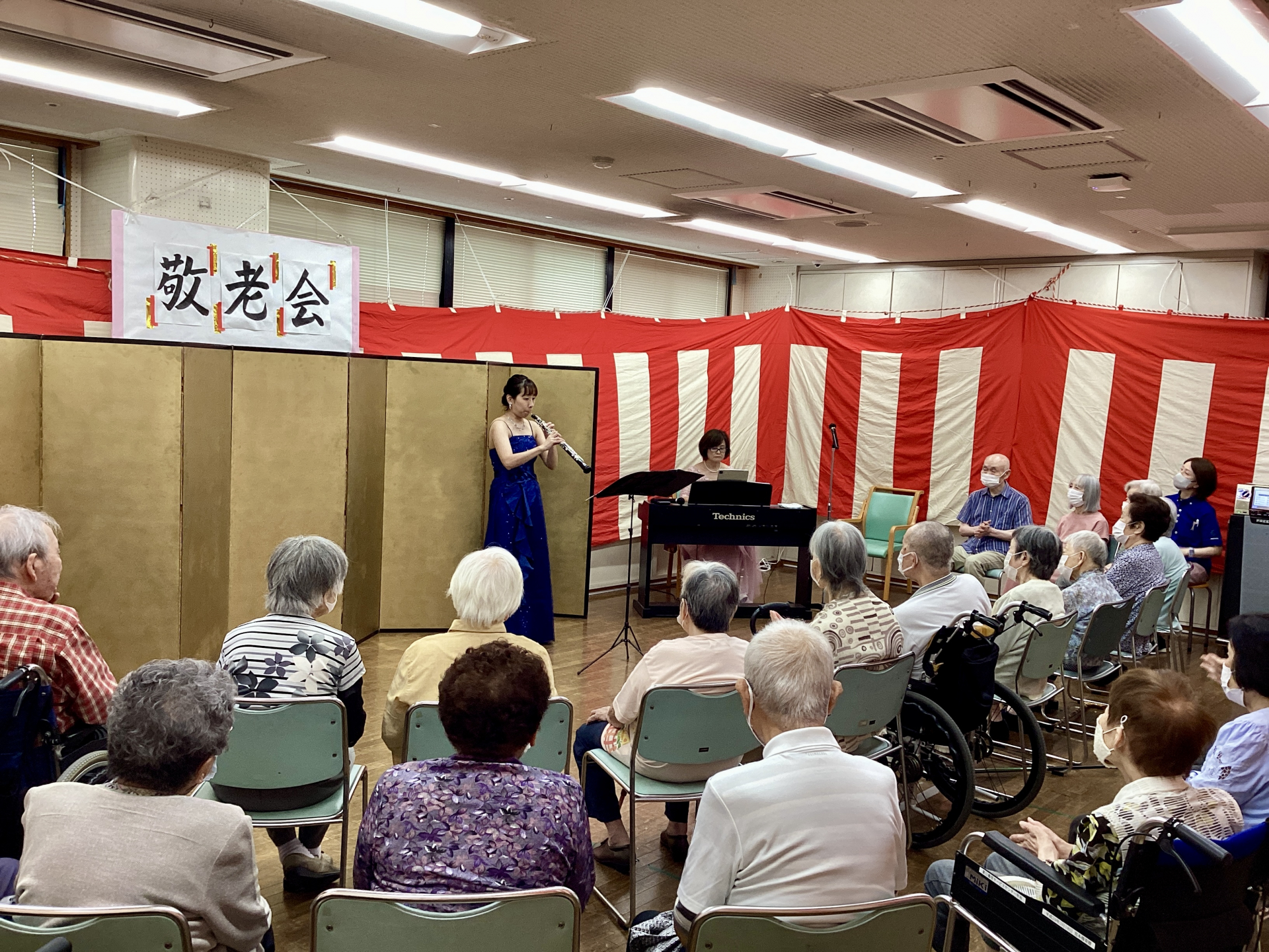 本日は敬老の日。私たちのデイサービスセンターでは、特別な敬老会が行われました。この日、たなかや音楽工房の素敵なお二人をお招きし、オーボエとピアノの心温まるアンサンブルが披露されました。演奏に耳を傾ける間、会場は感動でいっぱいに。