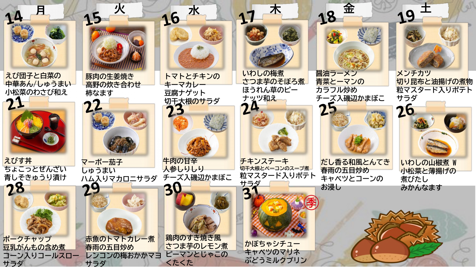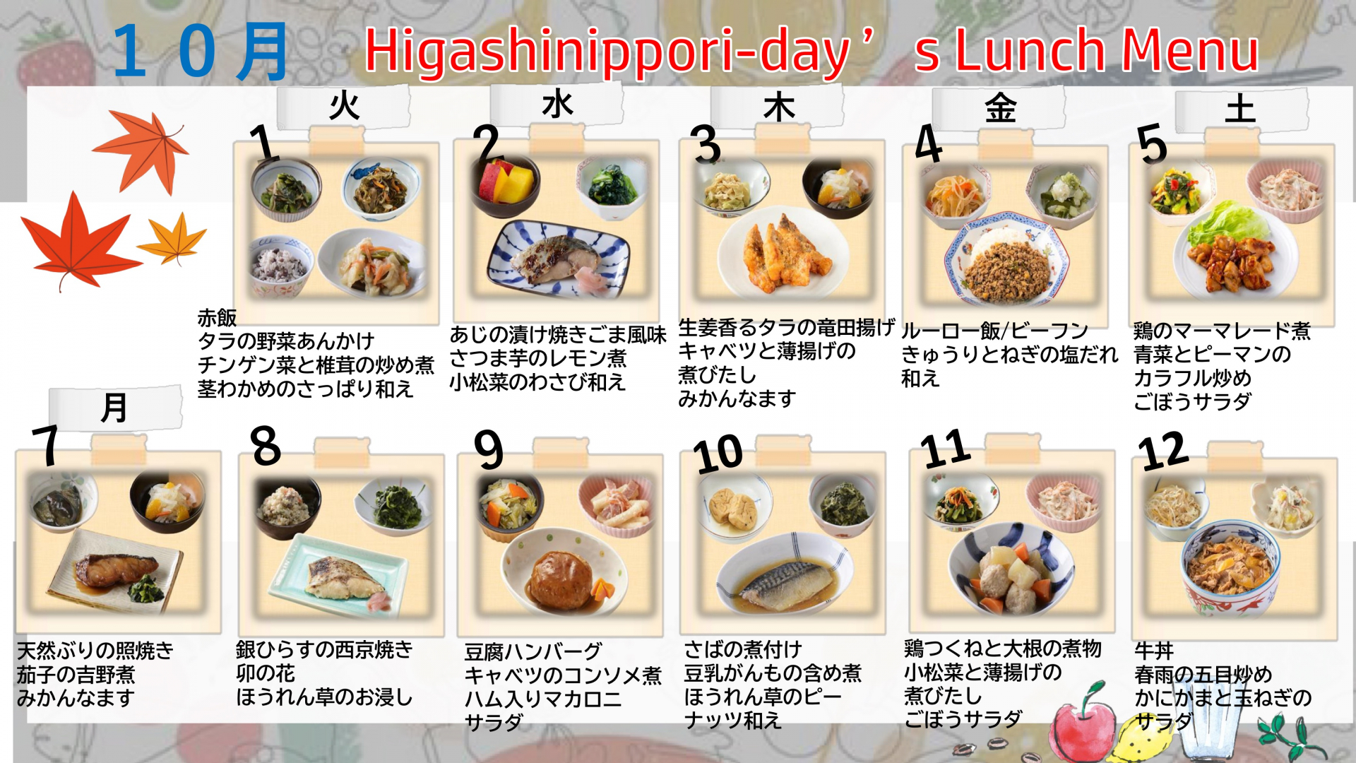 2024.09.30 お知らせ 10月の献立表 Tweet シェアする 来月の献立表です ご参照ください! 前の記事 2024.10.01 お知らせ 【東日暮里サービスセンター】 次の記事 2024.09.30 お知らせ 10月のプログラム予定表 一覧へ戻る