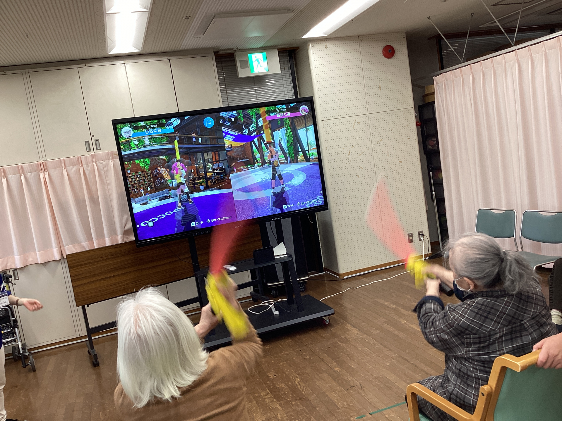 昨日のレクリエーションは任天堂Switchをeスポーツチャンバラを行いました。