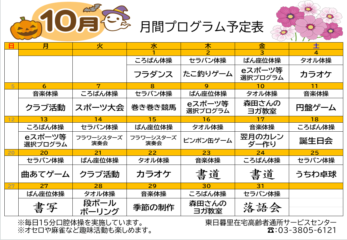 【東日暮里デイ】10月プログラム予定表