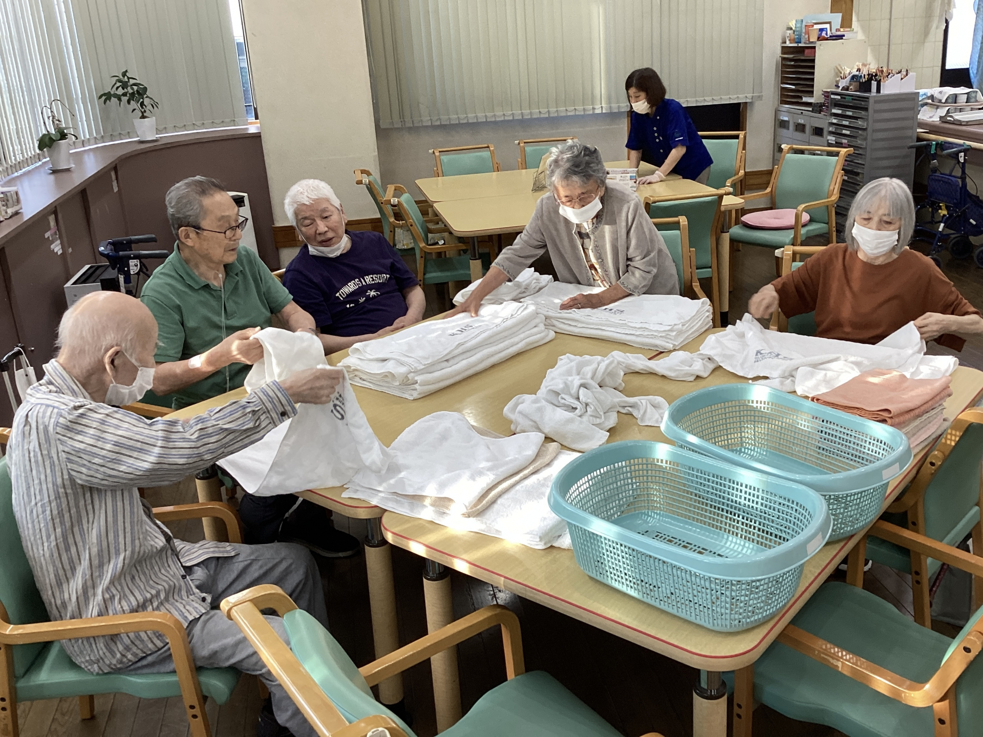 カラオケを楽しまれる事が多いのですが、この日は男性も含め洗濯物を畳んでくださいました!