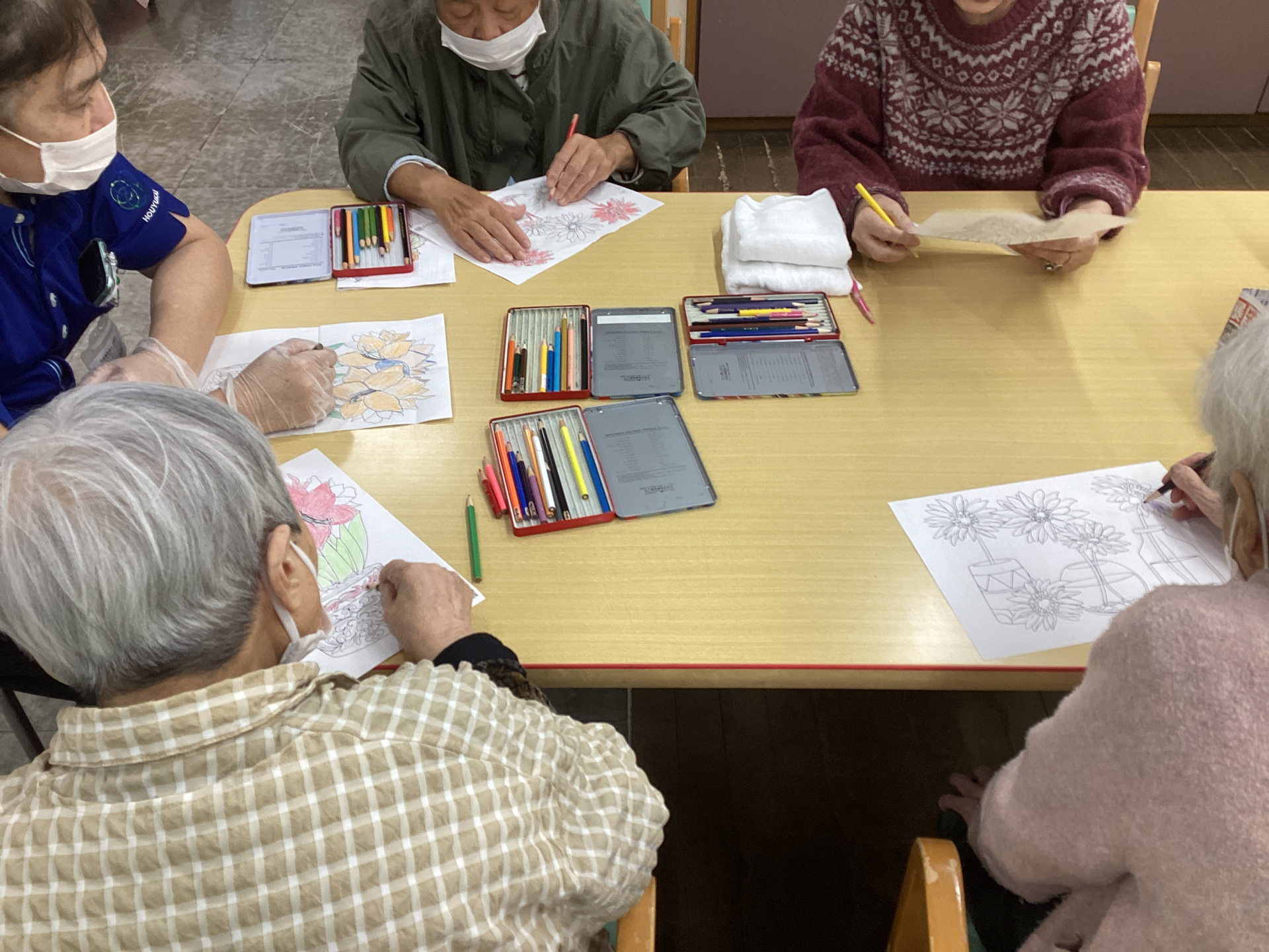 皆さま、それぞれに選んだ絵柄を、細かいところまでとても丁寧に色を重ねていらっしゃいました。集中して取り組む時間はとても穏やかで、仕上がった作品にはその方らしさがしっかりと表れていました。