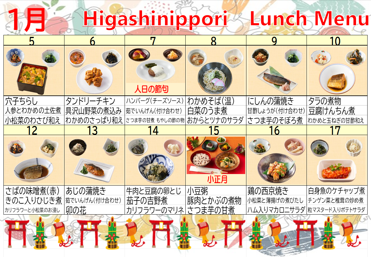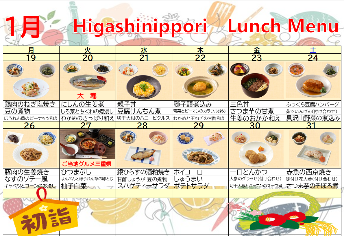 【東日暮里デイ】1月の献立表をお知らせいたします。