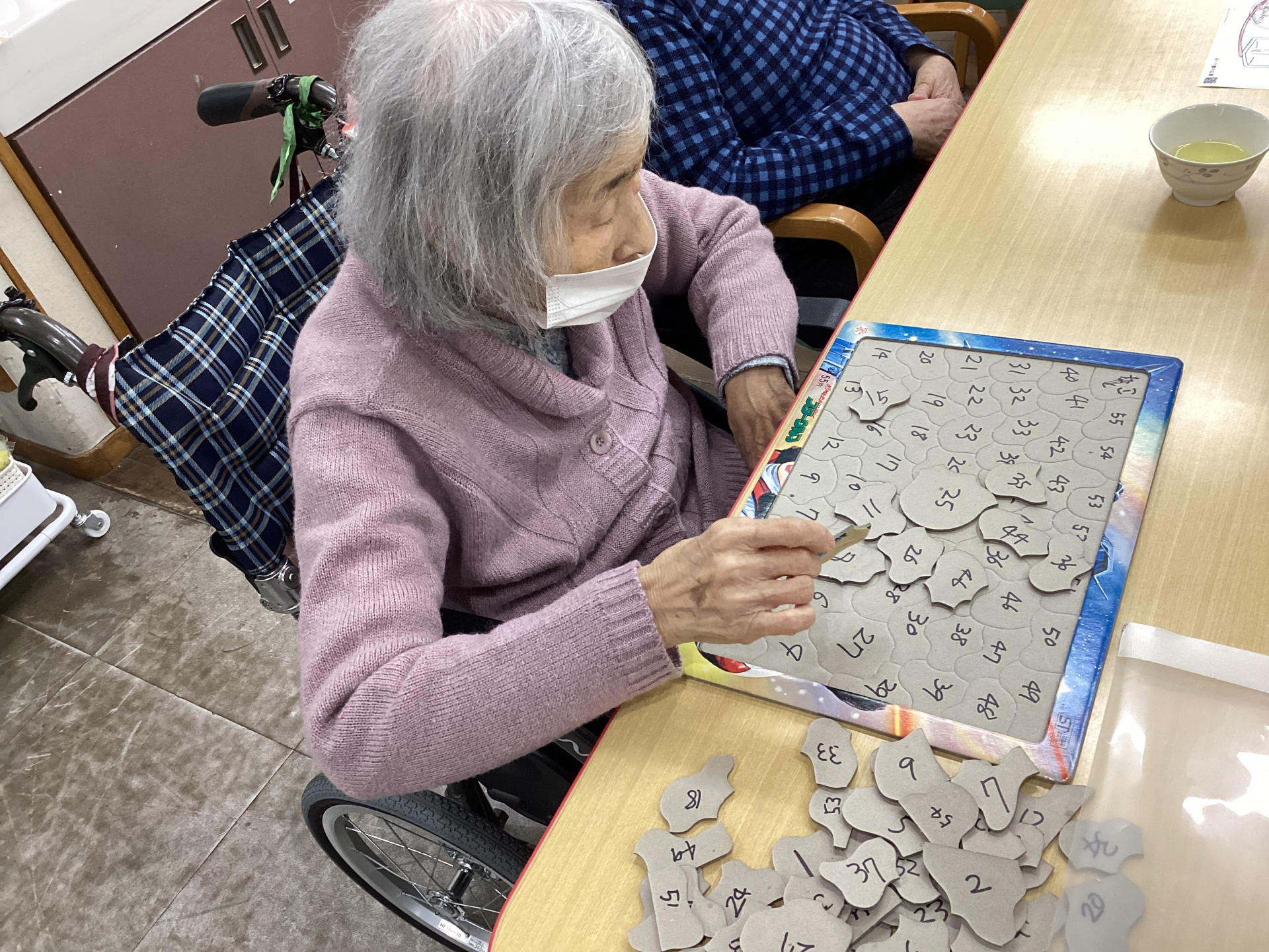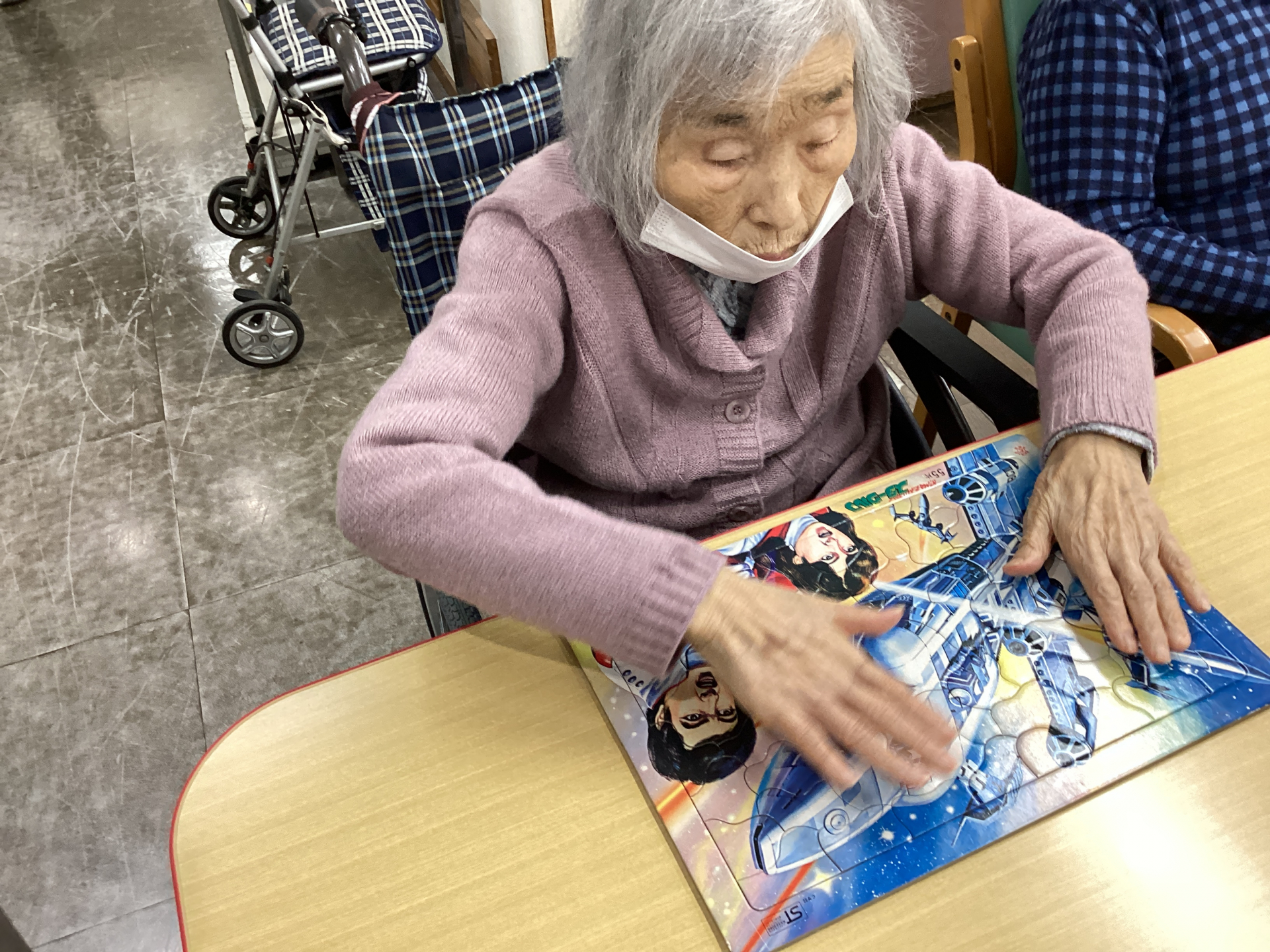 ご利用者さまより「何かやることはないの?暇だよ~」とのお声があり、職員が「パズルはいかがですか?」とお声掛けすると、