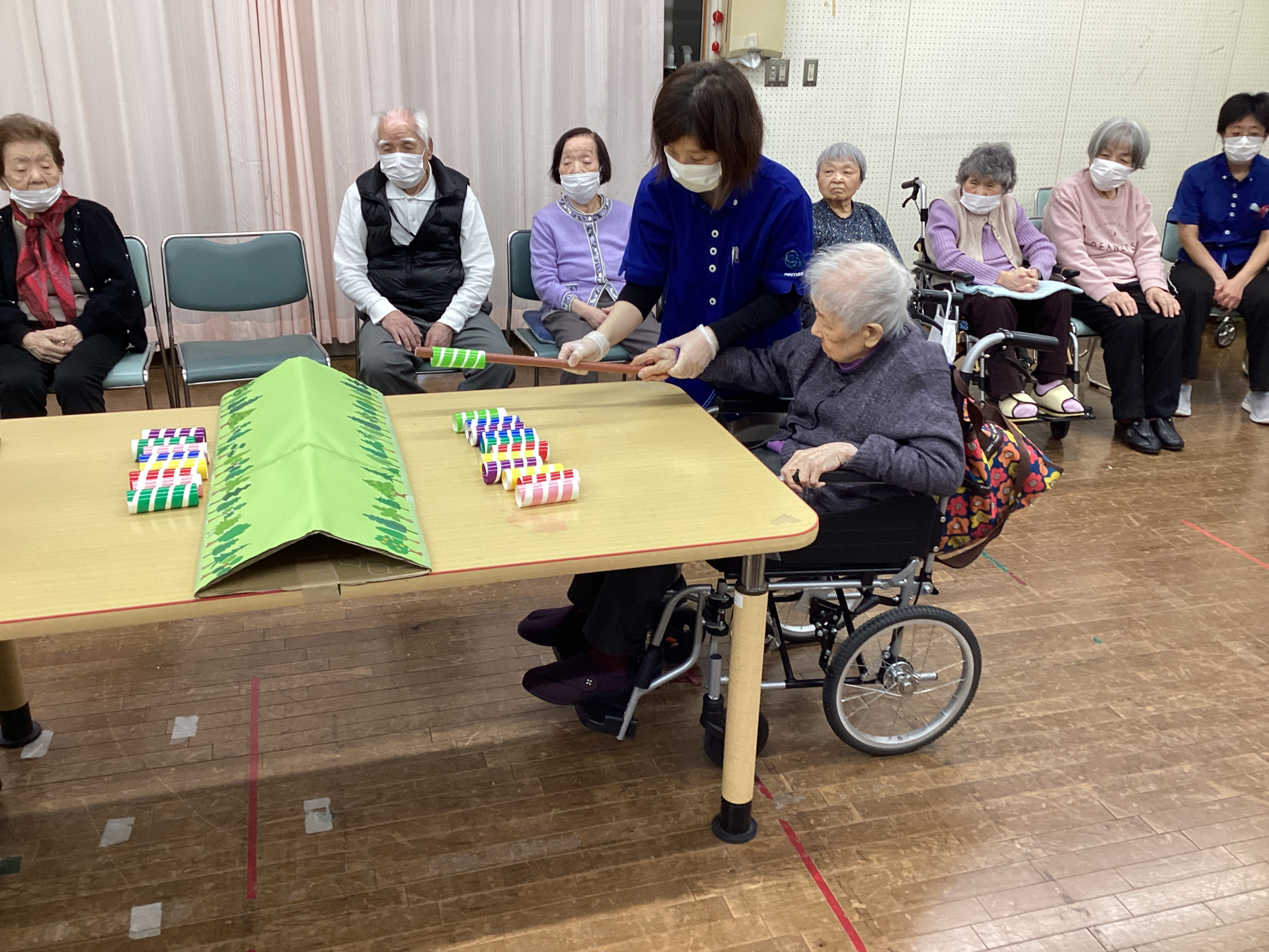 最初は「うまくいくかな?」と控えめなご様子も見られましたが、いざ始まると「それっ!」「もう一回!」と笑顔があふれ、周りの方からも自然と拍手や応援の声が上がっていました。山を越えて見事に入ると、「やった!」と喜びの声も聞かれ、フロア全体が明るい雰囲気に包まれました。H,O