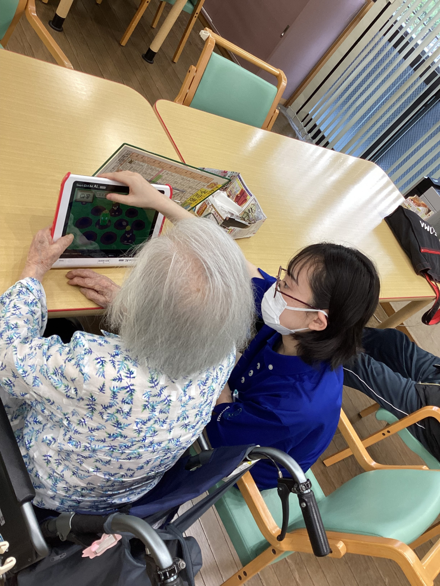 その間は、残っている方と体操や脳トレなどを行いながら、ゆったりとした時間を過ごします。