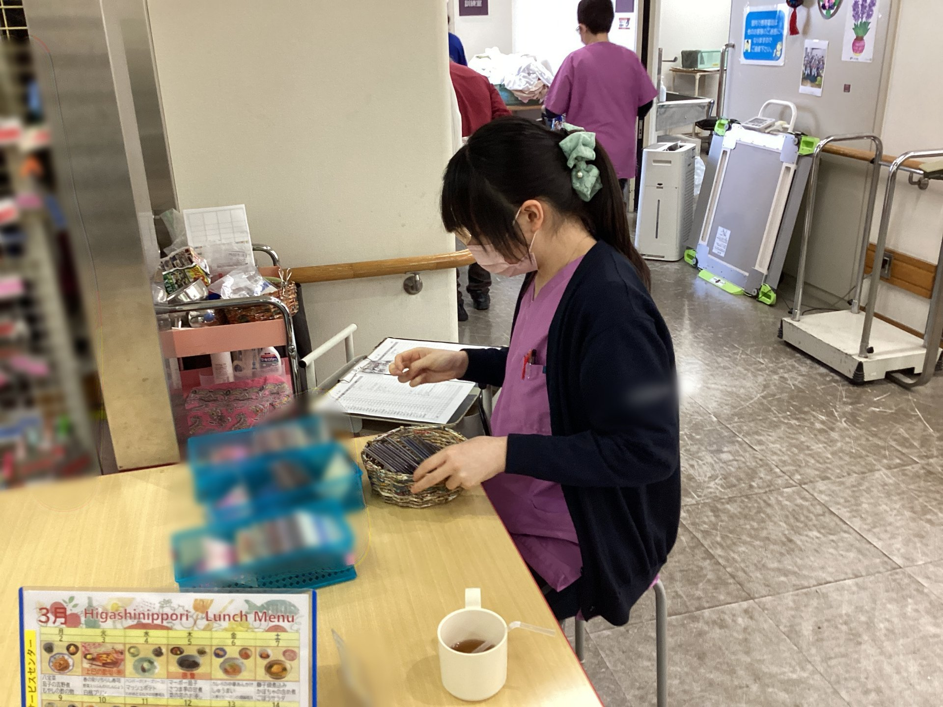 おやつの見守りや介助を行いながら、夕方のお薬の服薬対応なども行います。