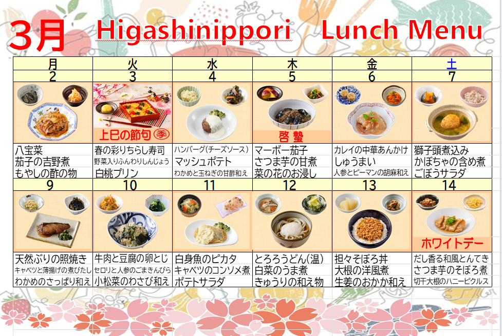 【東日暮里デイ】3月の献立表をお届けいたします♪