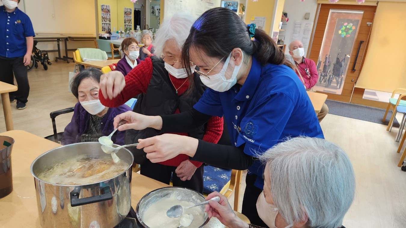 チャーさんもすいとん作りは初めてのでご利用様からいろいろ教えて下さったよ。