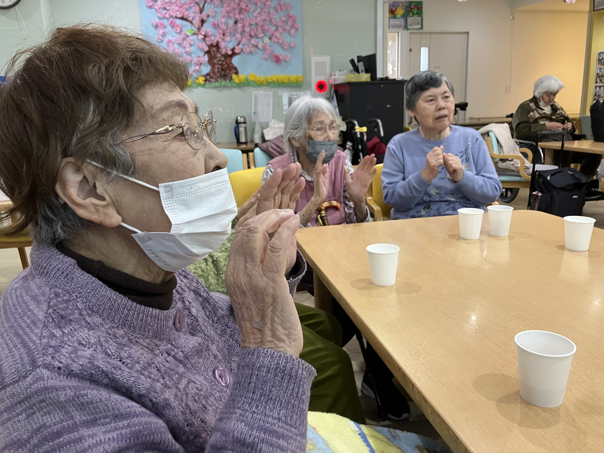 体操をしたり、折り紙をしたり、歌を唄ったり、しりとりしたり。