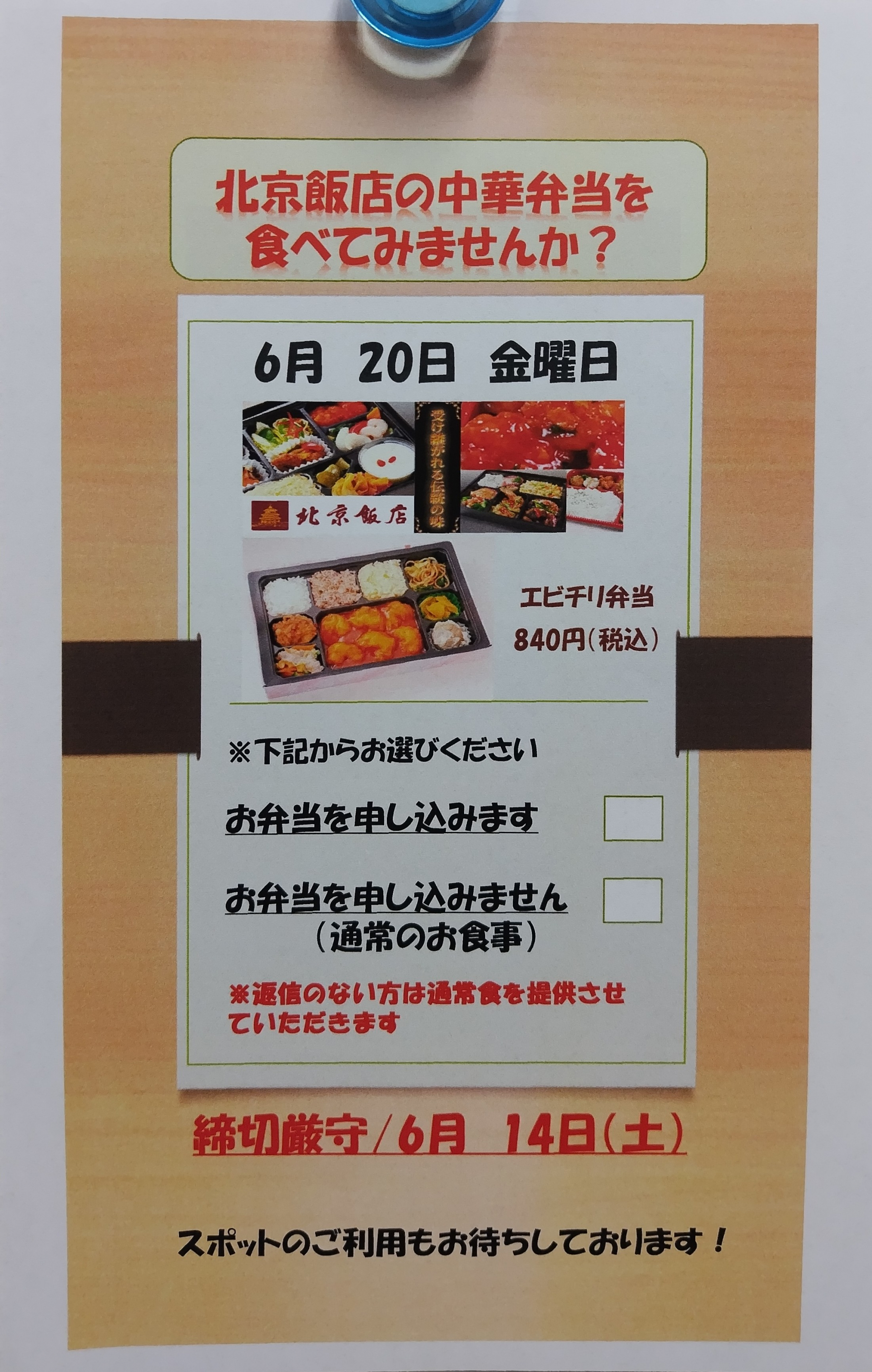今月は北京飯店のエビチリ弁当を企画してみました。