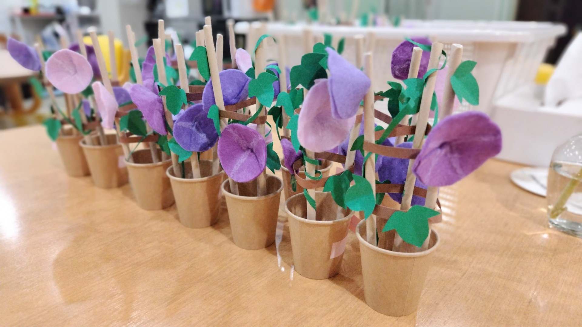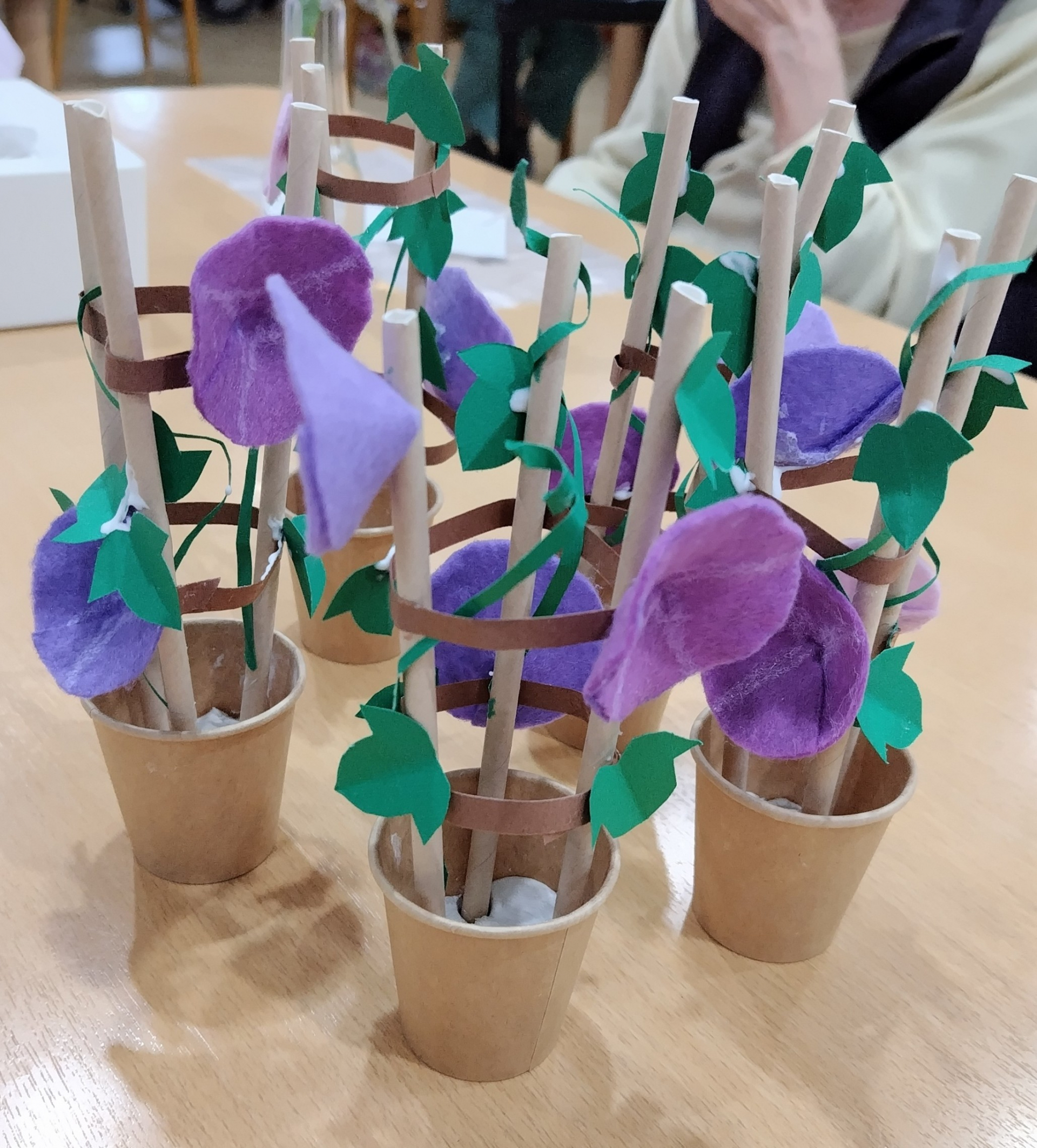 そこで、6月26日の手工芸は初夏を感じる朝顔の鉢植えを作ってみました♪