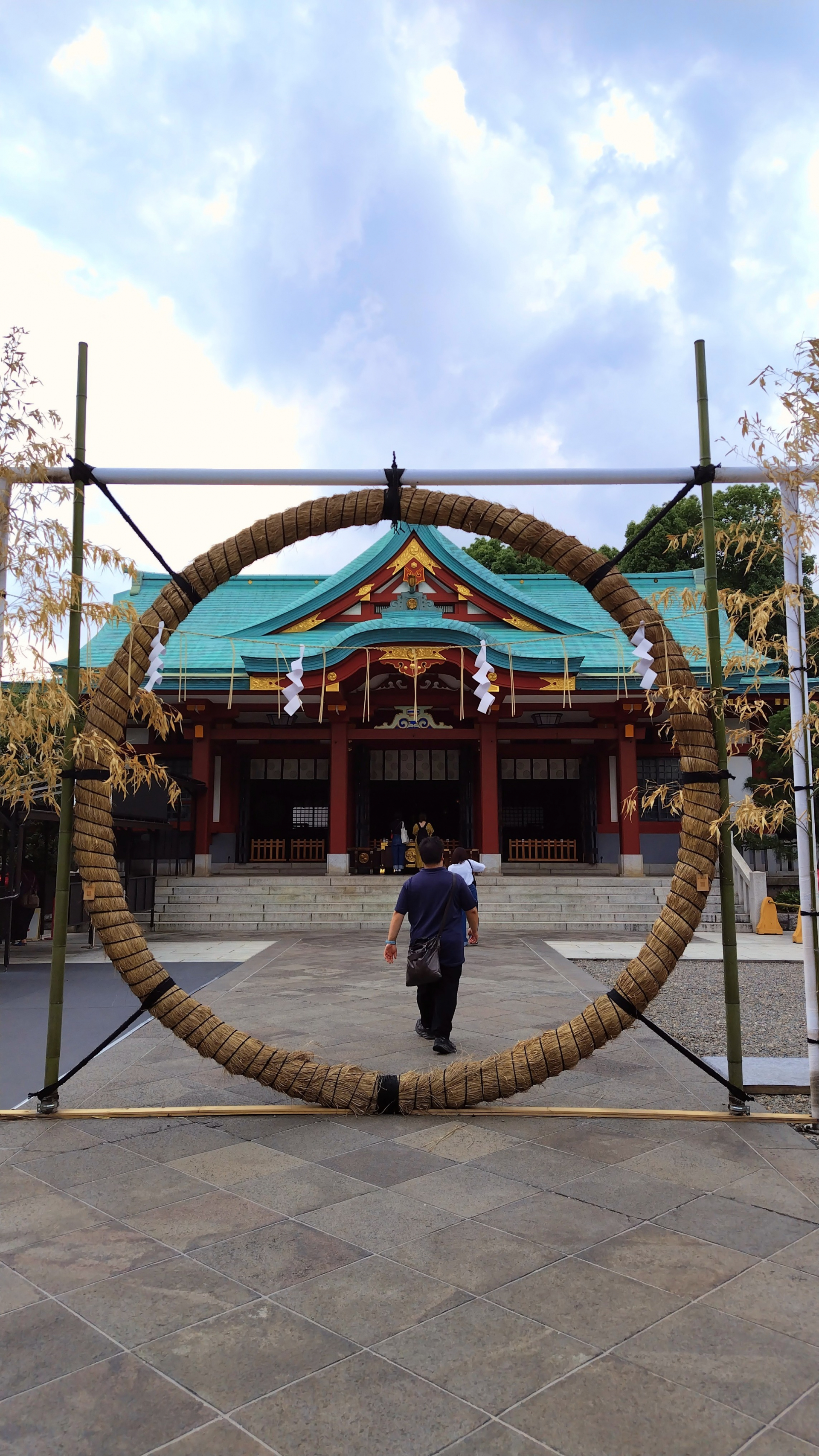 「茅の輪くぐり」では、神社の境内に立てられた直径数メートルほどの大きな輪をくぐります。