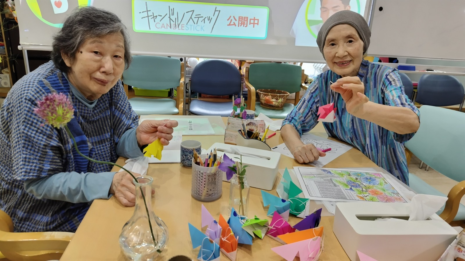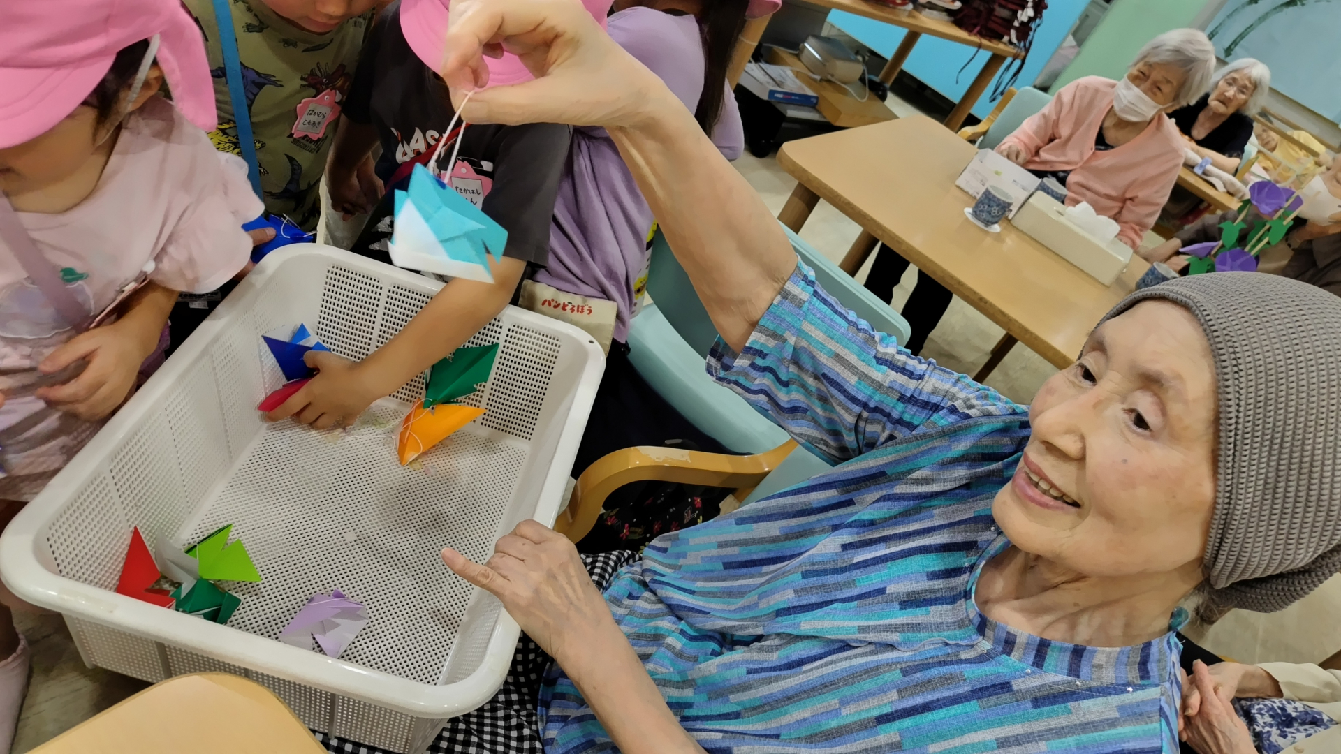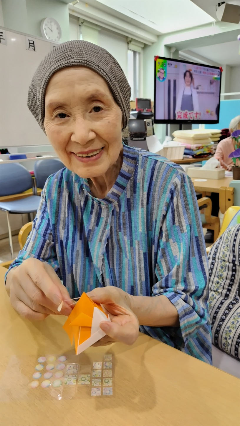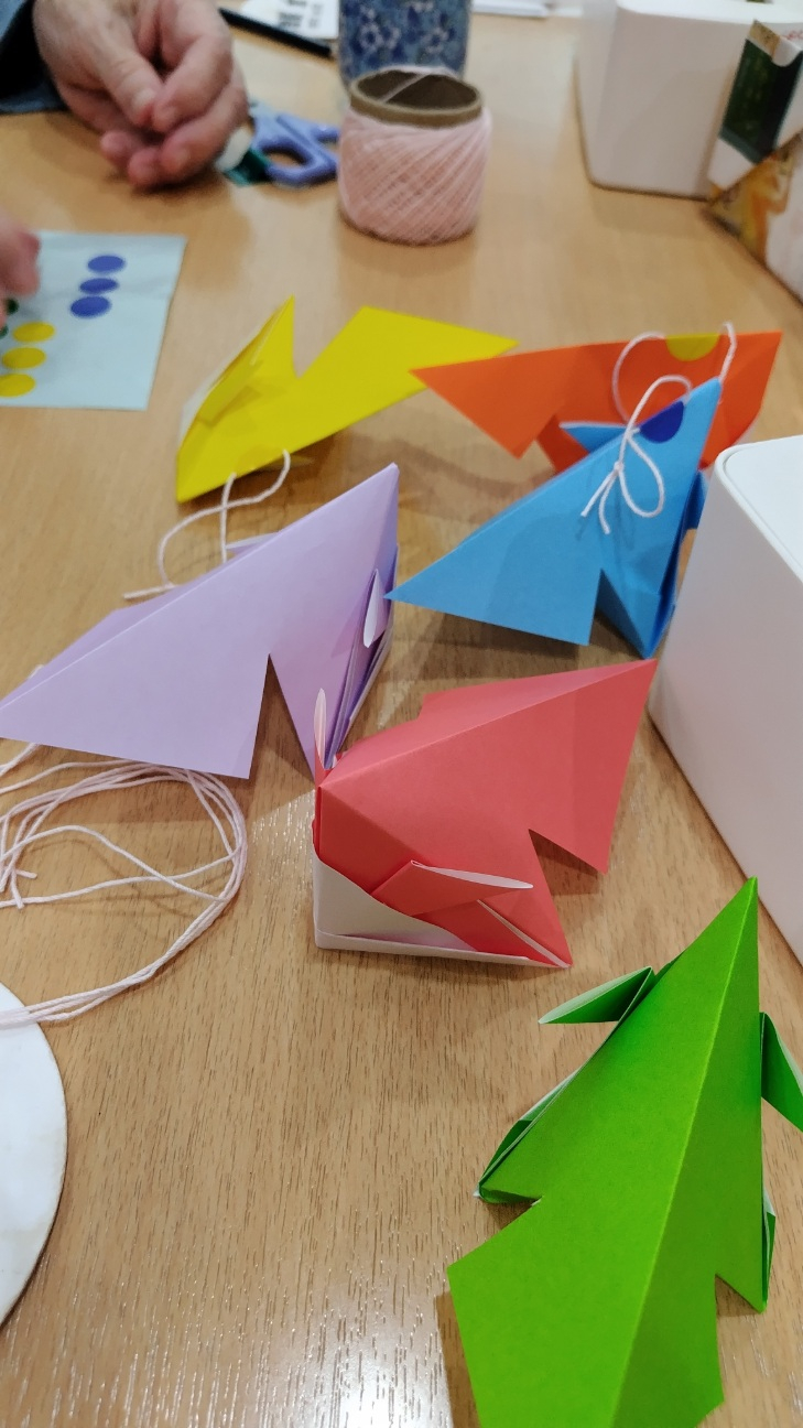 一便で到着したT様とI様と一緒に折り紙で金魚を作りました。