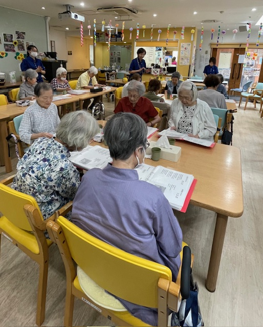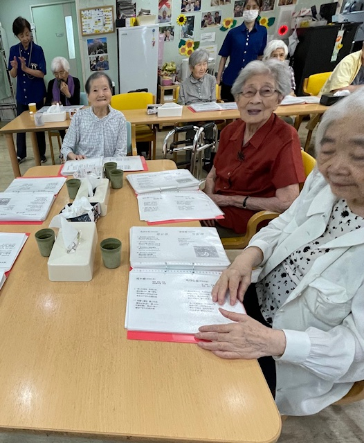 池尻デイでは、定期的に職員の素敵な伴奏で、歌集を使って歌会を開催しています。