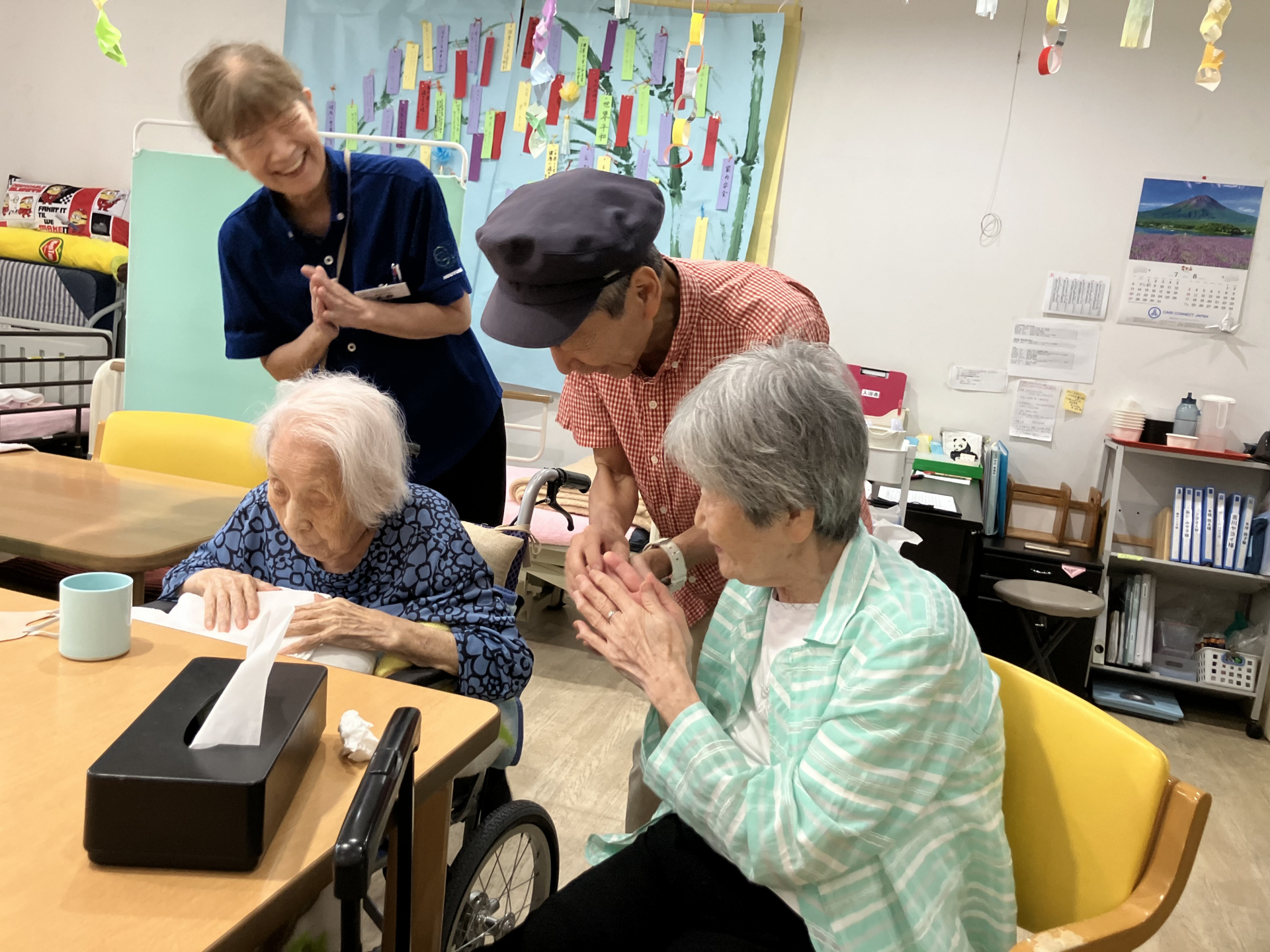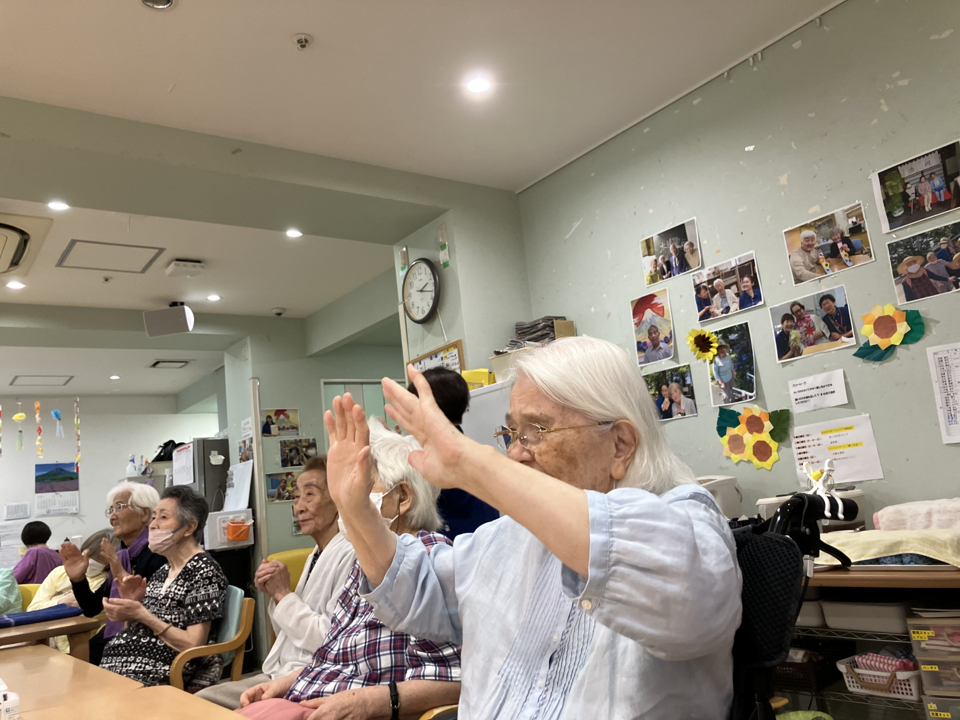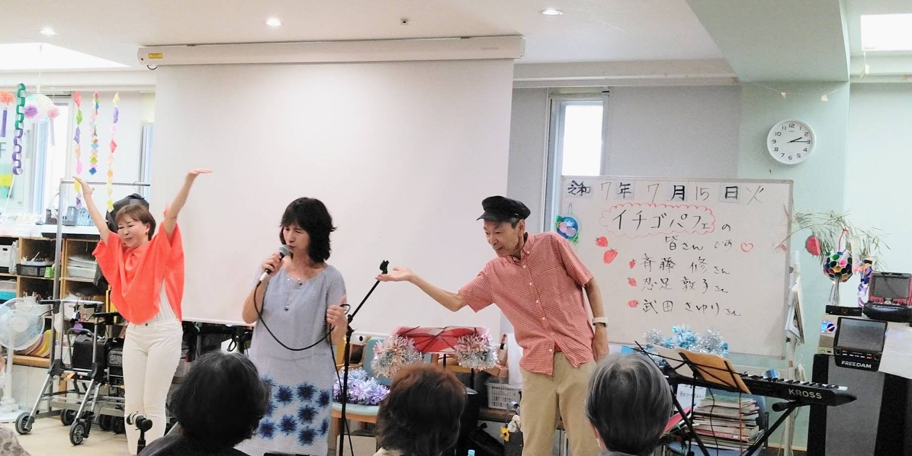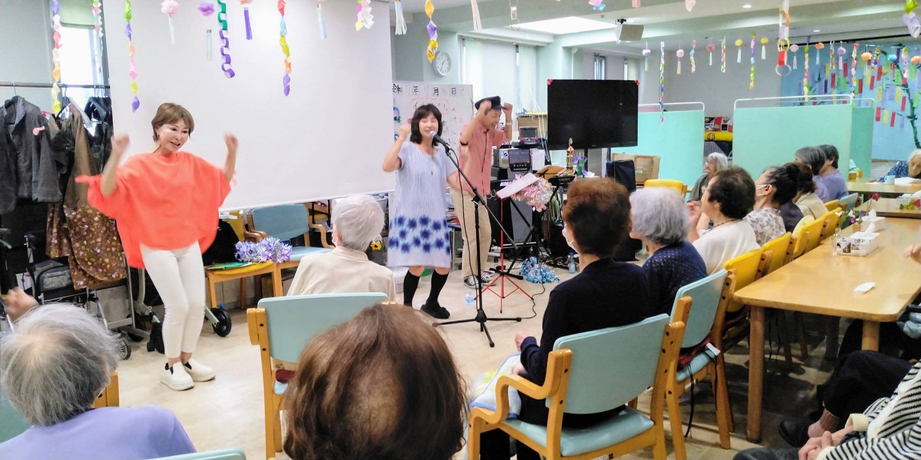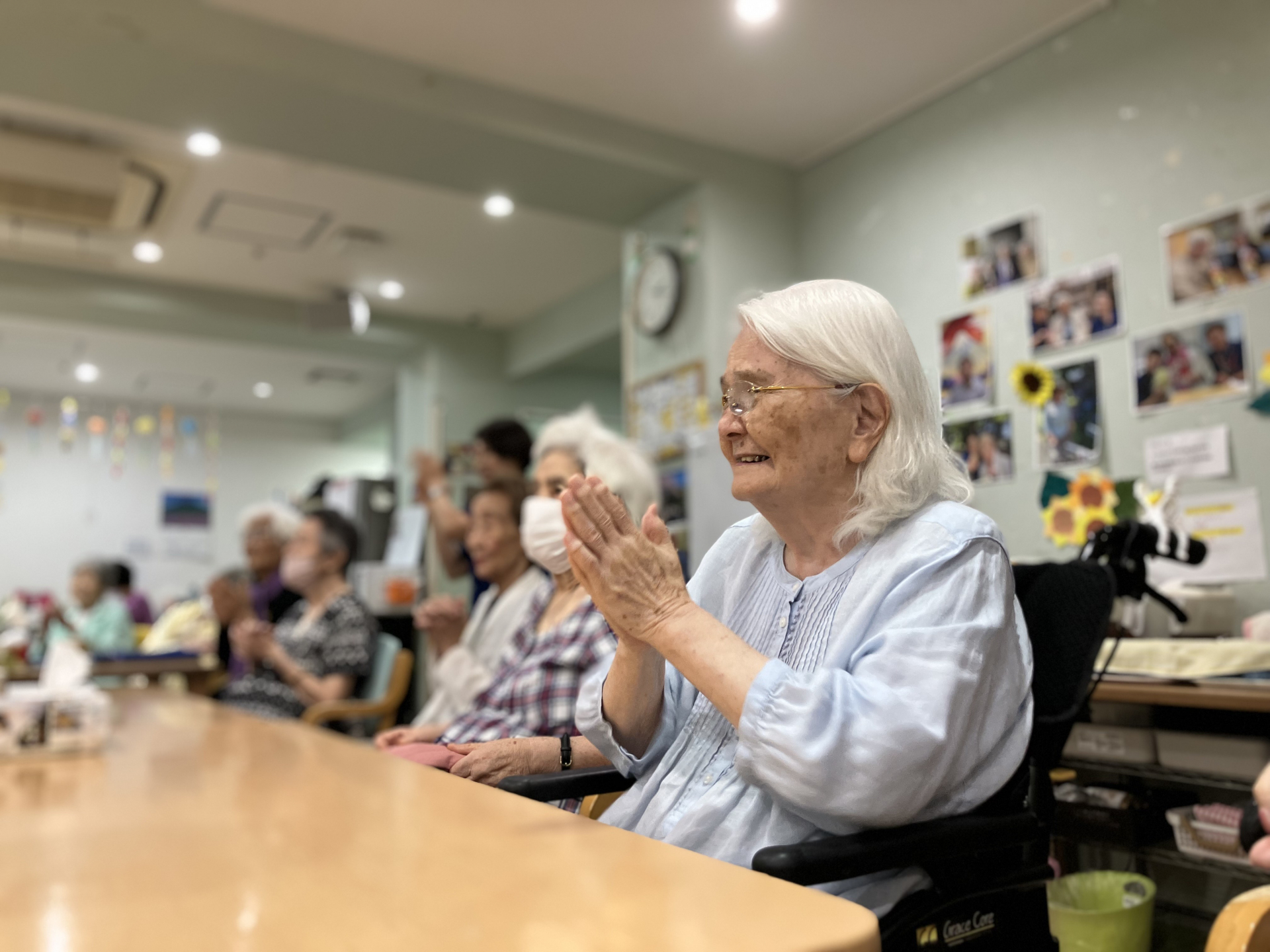 生演奏、歌や踊りを楽しまれた皆さん。ご利用者の表情を見るとわかります!