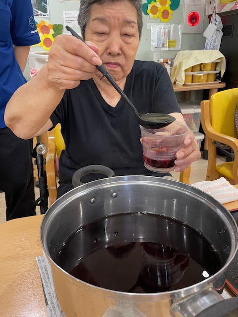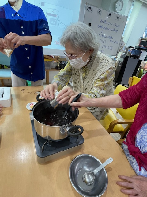 間もなくご自分から手を伸ばして意欲的に参加して楽しまれておりました。